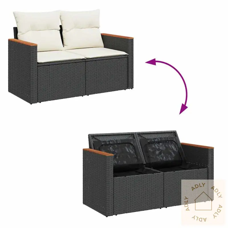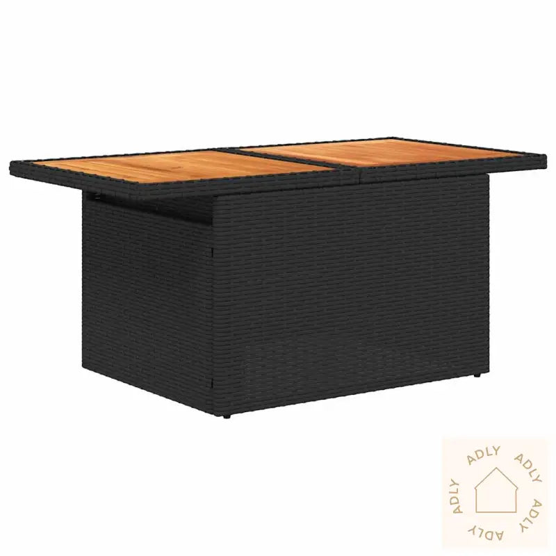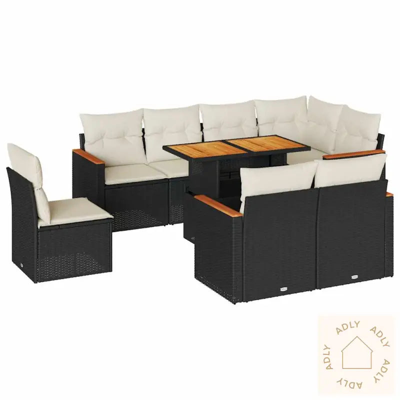 Maks. vektkapasitet per sete: 110 kgUV-bestandig materiale og justerbare føtter i slitesterk plast gjør at settet står stødig selv på ujevnt underlagMontering krevesHjørnesete:Farge: svartMaterialer: PE-rotting og pulverlakkert stål for ekstra holdbarhet og stilMål: 62 x 62 x 69 cm (B x D x H)Mål sete: 55 x 55 cm (B x D) gir deg god sitteplassSetehøyde fra bakke (uten pute): 37 cmMidtsete:Farge: svartMaterialer: PE-rotting og pulverlakkert stålMål: 55 x 62 x 69 cm (B x D x H)Mål sete: 55 x 55 cm (B x D)Setehøyde fra bakken (uten pute): 37 cmHjørnesete med rottingarmlener:Farge: svartMaterialer: PE-rotting, pulverlakkert stål, heltre akasie behandlet med oljefinishMål: 62 x 62 x 69 cm (B x D x H)Mål sete: 55 x 55 cm (B x D)Setehøyde fra bakken (uten pute): 37 cmArmlenhøyde: 55 cm fra bakken for ekstra komfortBord:Farge: svartMaterialer: PE-rotting, pulverlakkert stål og heltre akasie med oljefinish, noe som gir både et elegant uttrykk og solid kvalitetMål: 100 x 55 x 44/73 cm (L x B x H)Pute:Farge: kremhvitTrekkmateriale: slitesterkt stoff (100% polyester)Fyll setepute: mykt skumFyll ryggpute: komfortabel bomullsfiberMål setepute: 55 x 55 x 3 cm (B x D x T)Mål ryggpute: 55 x 45 x 13 cm (L x B x T)Leveransen inneholder:1 x hagebord1 x hjørnesete med vanntett bag og oppbevaringsfunksjon4 x hjørneseter med rottingarmlener og vanntett bag3 x senterseter med vanntett bag8 x seteputer med avtakbare, vaskbare trekk9 x ryggputer