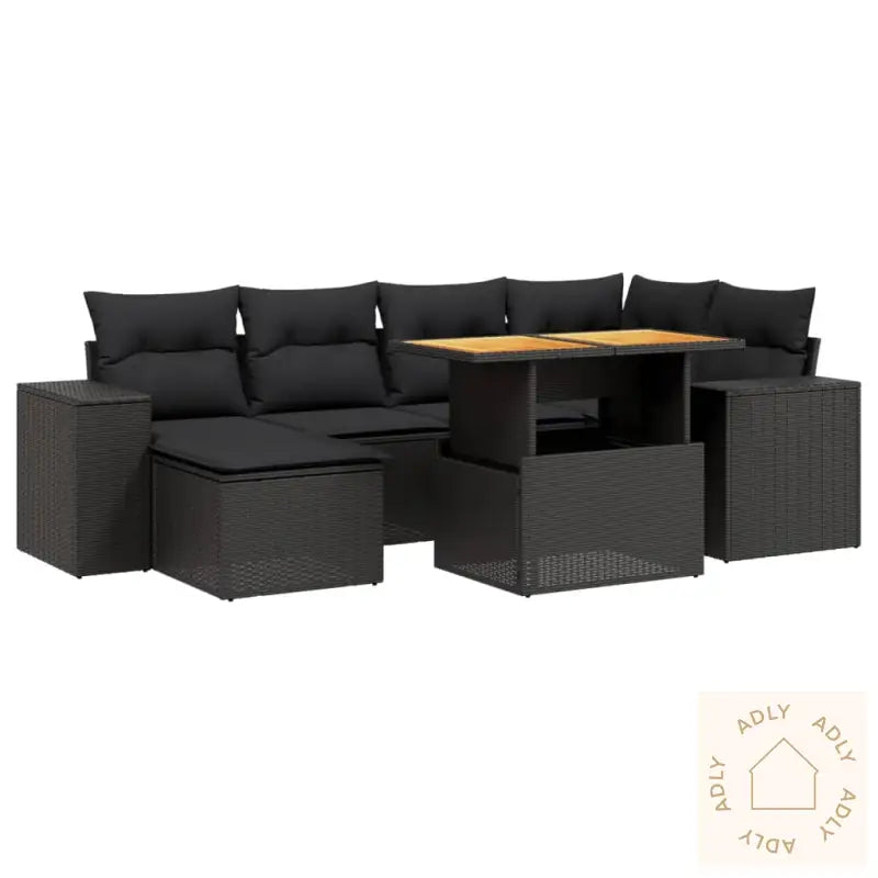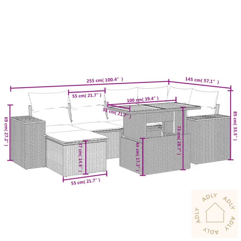 Slitesterkt materiale: Settets PE-rotting (polyrotting) gir en både robust og stilig overflate, og materialet ser ut som ekte rotting, men krever minimalt med stell. Siden det er lett og værbestandig, holder utemøblene seg fine år etter år – perfekt for norske forhold.Justerbar bordplate: Bordplaten kan enkelt reguleres i høyden, slik at det samme bordet kan brukes både som sofabord til avslapping og som spisebord når du får besøk. Dette gjør settet ekstra praktisk, enten du skal servere lunsj eller bare vil sette fra deg kaffekoppen.Komfortabel seteopplevelse: De tykke, myke putene skaper en god sittekomfort, enten du ønsker å slappe helt av eller ha lange samtaler med gjestene dine.Avtakbare og vaskbare trekk: Alle seteputene har avtagbare trekk laget av slitesterk polyester. Dette gjør det enkelt å holde møblene rene, så du alltid har en fresh uteplass klar for gjester.Modulært design: Sofaen kan enkelt endres og tilpasses akkurat slik du vil ha den, takket være modulenes fleksibilitet. Bygg om etter behov og plass, så får du en personlig stil på uteområdet ditt!Godt å vite:
