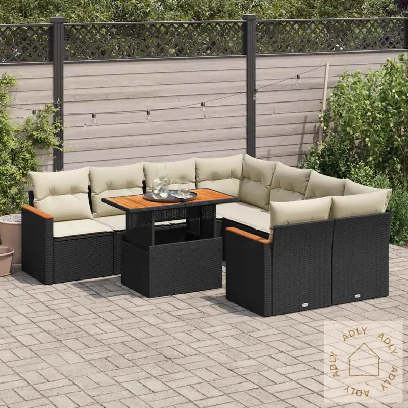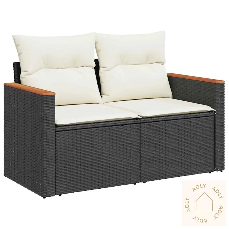 For at utemøblene dine skal holde seg fine over tid anbefales det å beskytte dem med et vanntett trekk.Maks vektkapasitet per sete: 110 kgUV-bestandig – holder fargen selv i sterk solJusterbare plastføtter for stabilitet på ulikt underlagMontering nødvendig: jaHjørnesete:Farge: svartMaterialer: PE-rotting, pulverlakkert stålMål: 62 x 62 x 69 cm (B x D x H)Mål sete: 55 x 55 cm (B x D)Setehøyde fra bakken (uten pute): 37 cmMidtsete:Farge: svartMaterialer: PE-rotting, pulverlakkert stålMål: 55 x 62 x 69 cm (B x D x H)Mål sete: 55 x 55 cm (B x D)Setehøyde fra bakken (uten pute): 37 cmHjørnesete med rottingarmlener:Farge: svartMaterialer: PE-rotting, pulverlakkert stål, heltre akasie (oljebehandlet)Mål: 62 x 62 x 69 cm (B x D x H)Mål sete: 55 x 55 cm (B x D)Setehøyde fra bakken (uten pute): 37 cmArmlenhøyde fra bakken: 55 cmBord:Farge: svartMaterialer: PE-rotting, pulverlakkert stål, heltre akasie (oljebehandlet)Mål: 100 x 55 x 44/73 cm (L x B x H)Puter:Farge: kremhvitMateriale trekk: stoff (100% polyester)Fyll setepute: skumFyll ryggpute: bomullsfiberMål setepute: 55 x 55 x 3 cm (B x D x T)Mål ryggpute: 55 x 45 x 13 cm (L x B x T)Leveransen inkluderer:1 x hagebord2 x hjørnesete med oppbevaringsfunksjon og vanntett bag2 x hjørnesete med rottingarmlener, oppbevaringsfunksjon og vanntett bag4 x sentersete med oppbevaringsfunksjon og vanntett bag8 x seteputer med avtagbare og vaskbare trekk10 x ryggputerMøbelsettet kombinerer funksjonelle detaljer som vanntett bag og praktisk oppbevaring med elegante svart materialer og slitesterkt pulverlakkert stål, noe som gir et bruksvennlig og eksklusivt inntrykk. Med nøyaktige mål på hver del og gjennomtenkte løsninger får du både kvalitet og fleksibilitet til uterommet ditt.