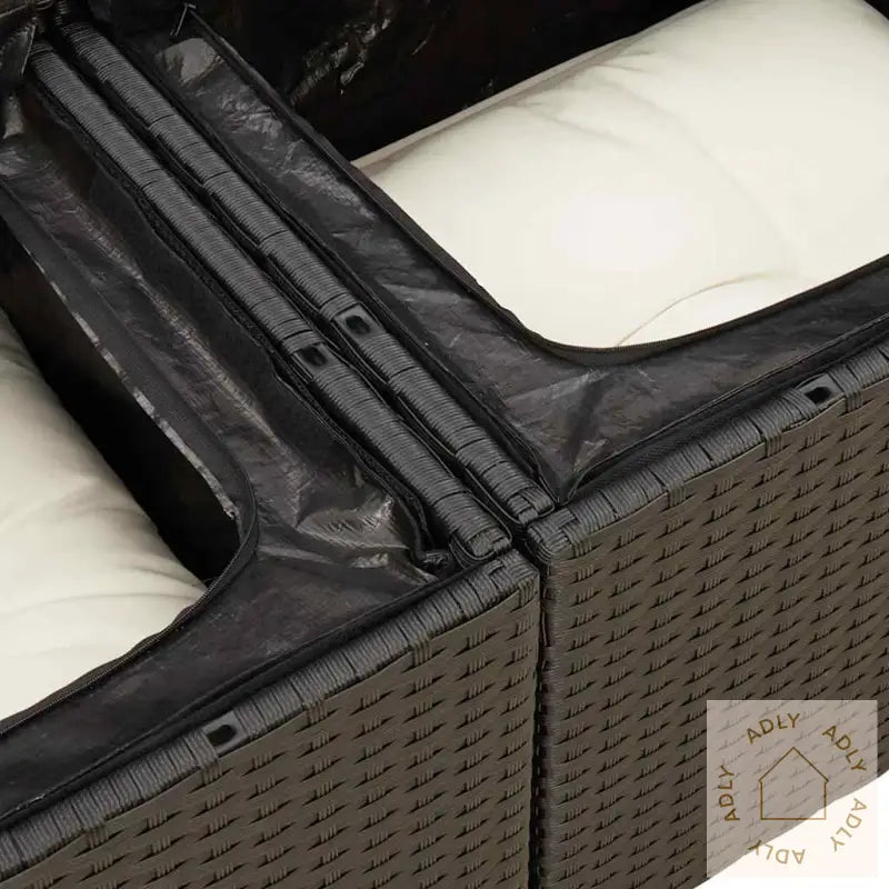 Slitesterkt materiale: Hagemøblene er laget av solid PE-rotting (polyrotting) – et lett, holdbart og værbestandig materiale som ligner naturlig rotting, men krever minimalt med vedlikehold. Kombinert med svart pulverlakkert stål får du et robust sett som holder seg pent år etter år.Praktisk oppbevaring med vanntett bag: Under hvert sete finner du romslig oppbevaringsplass med medfølgende vanntett bag. Her kan du enkelt oppbevare puter, leker og annet du vil ha lett tilgjengelig. Innervesken har et topplokk og sikres med krok-og-løkke-fester, slik at innholdet ligger trygt uansett vær.Lettvint renhold: Seteputene har avtakbare og vaskbare trekk, så det er superenkelt å holde dem rene.Modulært design: Med sitt fleksible moduldesign kan du flytte rundt på delene og sette sammen utemøbene akkurat slik du ønsker. Tilpass sittegruppen etter behov – perfekt når du får besøk eller vil endre uttrykket i uteområdet ditt.Godt å vite: