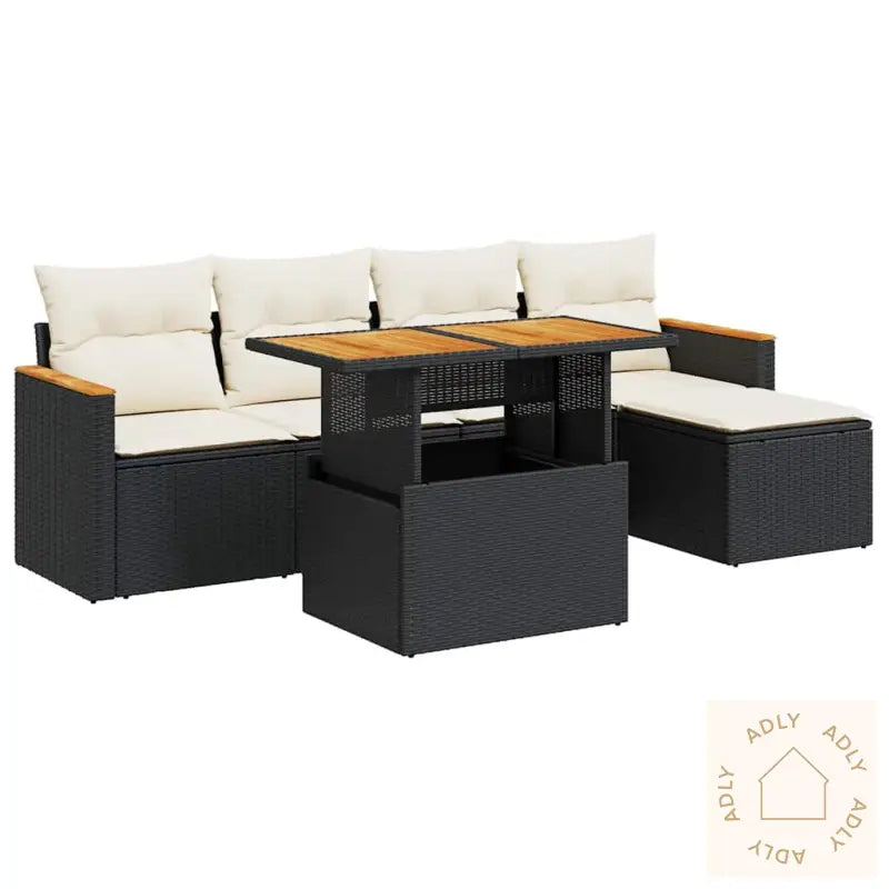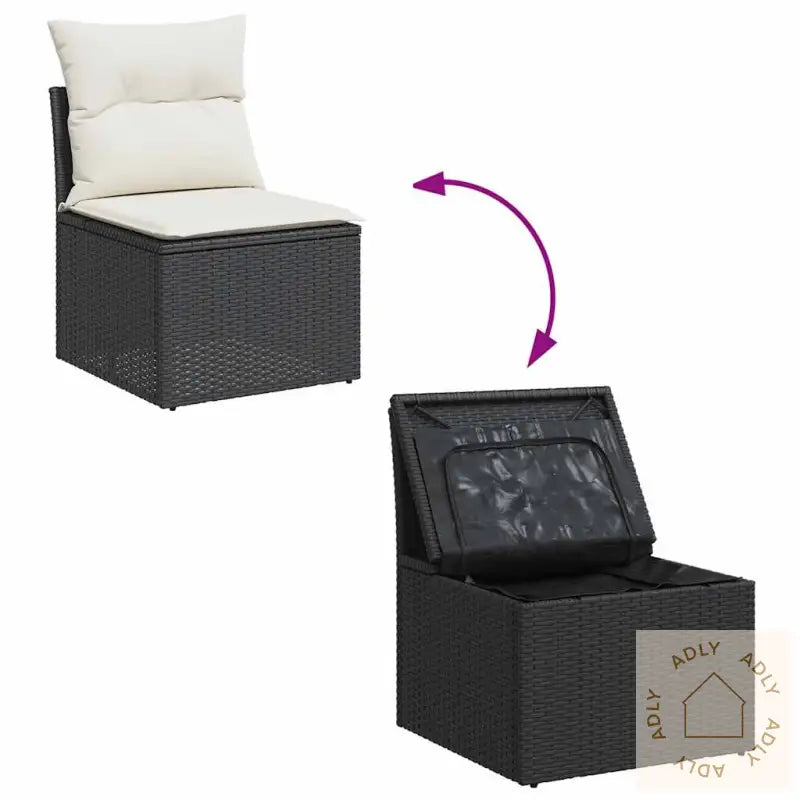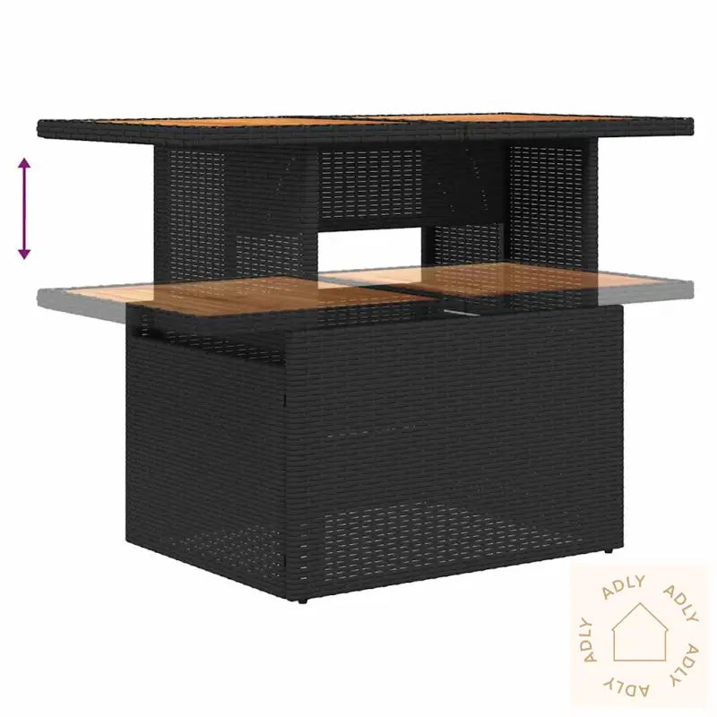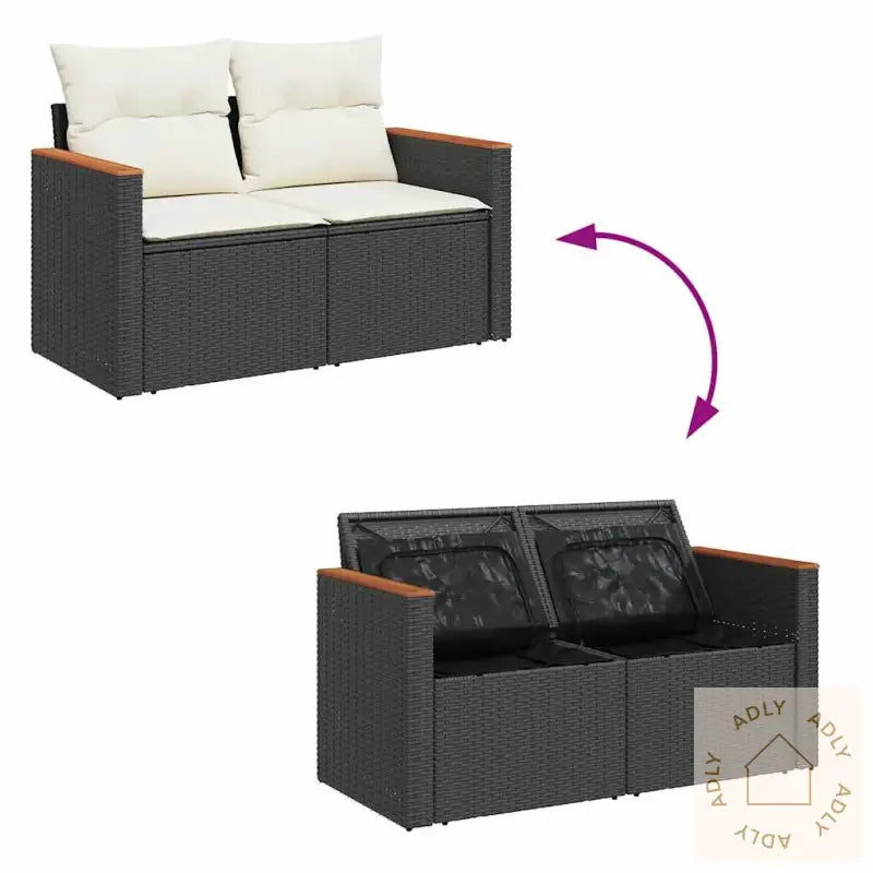 For å bevare det flotte utseendet til utemøblene anbefaler vi å dekke dem til med et vanntett trekk når de ikke er i bruk.Maks. vektkapasitet per sete: 110 kgUV-bestandig – materialene holder seg fine og sterke selv i langvarig sollysJusterbare plastføtter gjør at møblene står stødig selv på ujevnt underlagMontering kreves, men settes sammen raskt med tydelig veiledningMidtsete:Farge: svartMaterialer: PE-rotting og pulverlakkert stål, noe som gir ekstra styrke og beskyttelse mot rustMål: 55 x 62 x 69 cm (B x D x H)Mål sete: 55 x 55 cm (B x D)Setehøyde fra bakken (uten pute): 37 cmKrakk:Farge: svartMaterialer: PE-rotting, pulverlakkert stålMål: 55 x 55 x 37 cm (B x D x H)Hjørnesete med rottingarmlener:Farge: svartMaterialer: PE-rotting, pulverlakkert stål, heltre akasie med oljefinish for en eksklusiv og naturlig lookMål: 62 x 62 x 69 cm (B x D x H)Mål sete: 55 x 55 cm (B x D)Setehøyde fra bakken (uten pute): 37 cmArmlenhøyde fra bakken: 55 cmBord:Farge: svartMaterialer: PE-rotting, pulverlakkert stål og solid heltre akasie med oljefinishMål: 100 x 55 x 44/73 cm (L x B x H) – justerbar høyde gir fleksibilitet til måltid eller serveringPute:Farge: kremhvitTrekkmateriale: Stoff (100 % polyester) – slitesterkt og behageligSeteputer fylt med skum for fasthet og komfortRyggputer fylt med myk bomullsfiberMål setepute: 55 x 55 x 3 cm (B x D x T)Mål ryggpute: 55 x 45 x 13 cm (L x B x T)Leveransen inneholder:1 x hagebord for servering eller hygge2 x hjørneseter med rottingarmlener og oppbevaringsfunksjon med vanntett bag2 x senterseter inkludert oppbevaringsfunksjon med vanntett bag1 x krakk med smart oppbevaring og vanntett pose5 x komfortable seteputer med avtakbart og vaskbart trekk4 x myke ryggputer