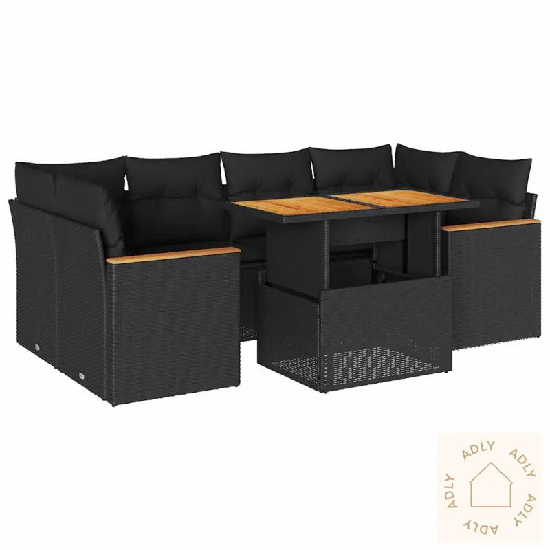 For at sofaene skal holde seg pene lengst mulig, anbefaler vi å bruke et vanntett trekk når de ikke er i bruk.Maks vektkapasitet per sete: 110 kgUV-bestandig stoff gjør at fargen holder seg frisk og sofistiskert svart år etter år.Justerbare plastføtter sikrer at sofaen står stødig selv på ujevne underlag.Monteringen er enkel, men det må påregnes litt arbeid ved levering.Midtsete:Farge: svartMaterialer: PE-rotting og pulverlakkert stålMål: 55 x 62 x 69 cm (B x D x H)Mål sete: 55 x 55 cm (B x D) – romslig nok for god sittekomfortSetehøyde fra bakken (uten pute): 37 cmHjørnesete:Farge: svartMaterialer: PE-rotting og pulverlakkert stålMål: 62 x 62 x 69 cm (B x D x H)Mål sete: 55 x 55 cm (B x D)Setehøyde fra bakken (uten pute): 37 cmHjørnesete med rottingarmlener:Farge: svartMaterialer: PE-rotting, pulverlakkert stål og heltre akasie med oljefinish som gir en naturlig kontrast til det svarte uttrykket.Mål: 62 x 62 x 69 cm (B x D x H)Mål sete: 55 x 55 cm (B x D)Setehøyde fra bakken (uten pute): 37 cmArmlenhøyde fra bakken: 55 cmBord:Farge: svartMaterialer: PE-rotting, pulverlakkert stål og heltre akasie med oljefinish for en robust og vakker overflate.Mål: 100 x 55 x 44/73 cm (L x B x H)Pute:Farge: svartMateriale trekk: stoff (100% polyester) som tåler mye bruk og er hurtigtørkende.Fyll setepute: skum for komfortFyllmateriale ryggpute: bomullsfiber som gir god støtteMål setepute: 55 x 55 x 3 cm (B x D x T)Mål ryggpute: 55 x 45 x 13 cm (L x B x T)Leveransen inneholder:1 x hagebord1 x hjørnesete inkludert oppbevaringsfunksjon med vanntett bag1 x hjørnesete med rottingarmlener inkludert oppbevaringsfunksjon med vanntett bag2 x hjørnesete med rottingarmlener inkludert oppbevaringsfunksjon med vanntett bag2 x sentersete inkludert oppbevaringsfunksjon med vanntett bag6 x seteputer med avtakbart og vaskbart trekk8 x ryggputer