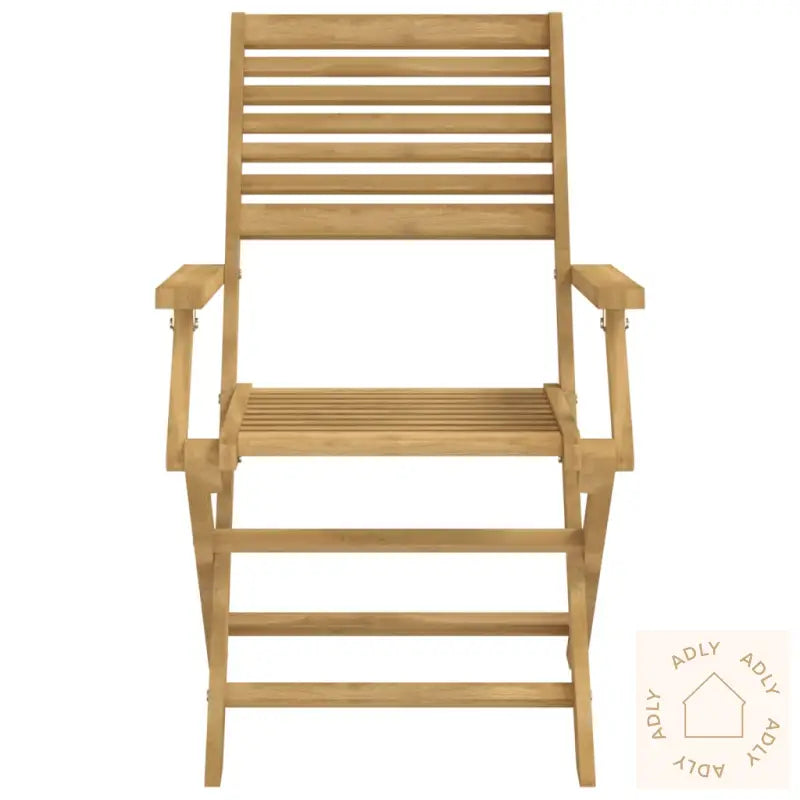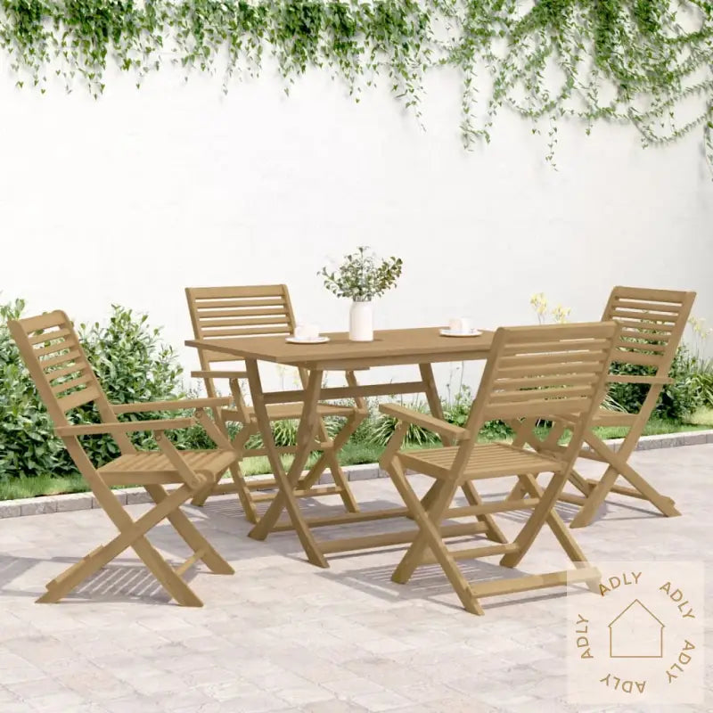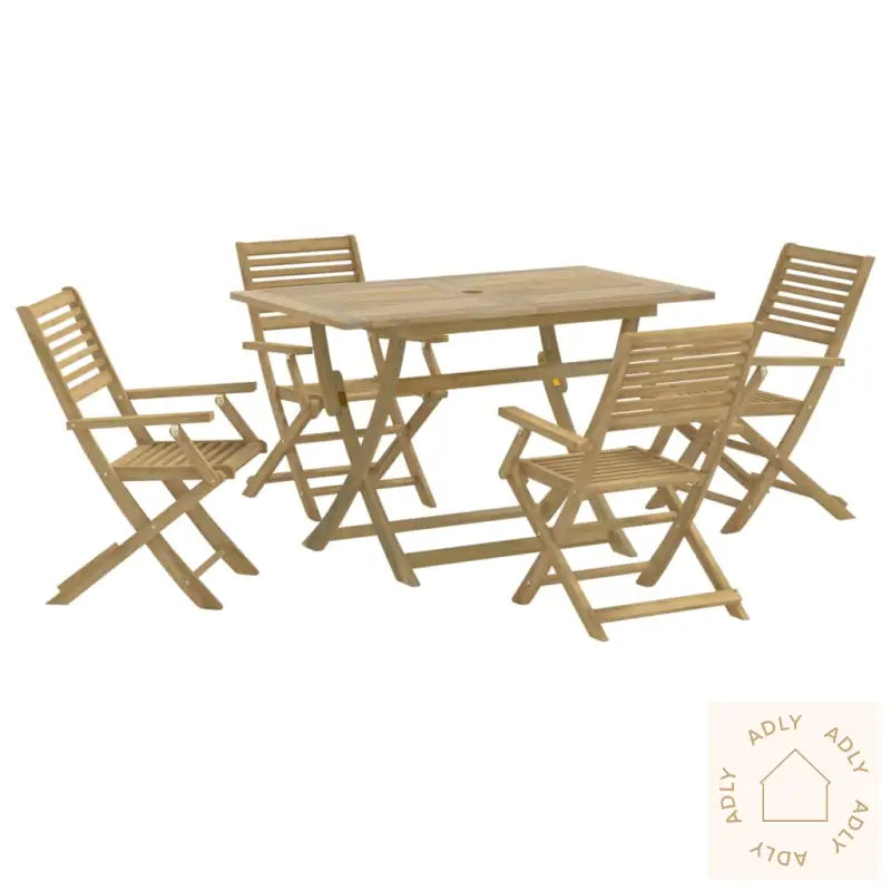Hagespisegruppen er laget av heltre akasie med lett finish for ekstra stabilitet, slitestyrke og et karakteristisk utseende. Akasietre har unike årringer og vakre knuter som gir et naturlig og rustikt preg du vil sette pris på i mange sesonger.De komfortable hagestolene har både armlener og ryggstøtte, noe som gjør det ekstra behagelig å sitte lenge rundt bordet, enten det er til måltider, gode samtaler eller avslapning.Lamelldesignet sørger for luft mellom bordplaten og stolsetene, så vann renner raskt av. Dette hjelper med å holde møblene tørre og forlenger levetiden til heltre akasie samtidig som finishen holder seg pen over tid.Bordplaten er romslig og stabil, slik at du får godt med plass til servering, fruktfat, drikke eller pynt. Diameteren på parasollhullet gjør det enkelt å sette opp en parasoll når solen steker.Takket være det smarte sammenleggbare designet, kan både bordet og stolene foldes bort for enkel oppbevaring eller transport – ideelt hvis du har begrenset plass eller ønsker å beskytte møblene ekstra godt innendørs om vinteren.Godt å vite: