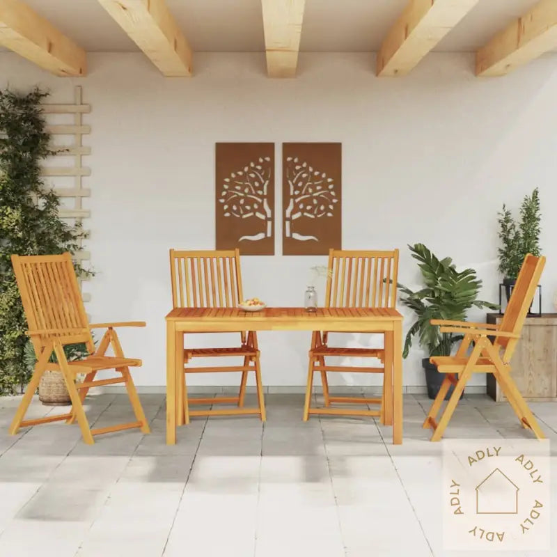For å bevare utseendet og forlenge levetiden på møblene dine, anbefaler vi å bruke vanntett trekk når de ikke er i bruk. Dette er spesielt smart hvis du vil slippe unødvendig slitasje fra vær og vind.Hagebord:Materiale: Oljebehandlet heltre akasieMål: 140 x 80 x 74 cm (L x B x H)Sammenleggbar hagestol:Materiale: heltre akasie med oljebehandlingMål: 57 x 69 x 111 cm (L x B x H)Montering kreves: jaLeveransen inneholder:1 x hagebord4 x sammenleggbare hagestoler