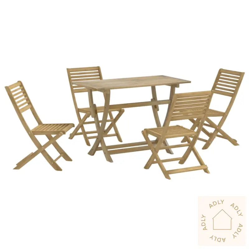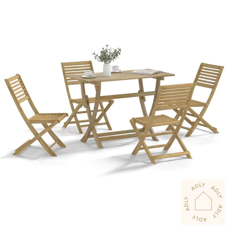 Hagespisegruppen er laget av heltre akasie, et solid naturmateriale som gir førsteklasses stabilitet og lang holdbarhet. Heltre akasie har en vakker, lett finish som fremhever treets rette årringer og naturlige knuter, noe som gir hver gruppe sitt unike, rustikke preg.Stolene har armlener og ryggstøtte som gjør det ekstra komfortabelt å sitte, så du kan nyte lange samtaler eller måltider uten å tenke på å skifte sittestilling hele tiden.Lamelldesignet på både bord og stoler bidrar til å holde setene tørre ved å forhindre vannansamling. Dette reduserer risikoen for råte og forlenger levetiden til dine utemøbler i heltre akasie.Bordplaten er utviklet for å være stødig og robust. Du får god plass til å sette fra deg alt du trenger av drikke, mat, fruktfat eller favorittdekorasjoner, slik at bordet løser både funksjon og stil.Det smarte sammenleggbare designet gjør at bord og stoler enkelt kan foldes sammen når de ikke er i bruk. Dette gir deg fleksibilitet med oppbevaring og gjør det lett å ta møblene med på hytta eller flytte dem rundt i hagen.Godt å vite: