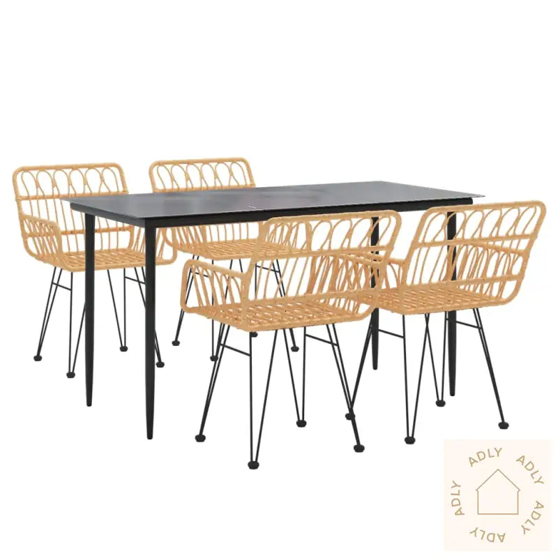 Slitesterkt materiale: PE-rotting, også kalt polyrotting, er et værbestandig materiale som gjør dette møbelsettet ideelt for utendørsbruk. Det er enkelt å holde rent, tåler sol og regn, og holder på sitt elegante utseende over tid. I tillegg gir den flettede finishen et moderne preg som passer perfekt inn sammen med andre møbler til hjemmet – både inne og ute.Solid og stabil ramme: Stålrammene gir ekstra støtte og sørger for at både bord og stoler står trygt, selv med daglig bruk. Med kvalitetsmaterialer holder dette settet lenge, så du kan slappe av uten bekymringer.Praktisk bordplate: Bordplaten i herdet glass er ikke bare pen å se på, men også utrolig enkel å vaske av hvis noe skulle søles. Herdet glass er støtsikkert og slitesterkt, samtidig som det gir et eksklusivt uttrykk. Perfekt plass for servering av mat, drikke eller dekorative detaljer som løfter uteromsfølelsen.Komfortable seter: De romslige spisestolene har både armlener og ryggstøtte, slik at du kan lene deg tilbake og nyte lange kvelder rundt bordet med både familie og venner. Her får du komfort som varer, time etter time.Praktiske gummiføtter: Settet er utstyrt med solide gummiføtter som beskytter underlaget og gjør at møblene står stødig, enten du har terrasse, platting eller setter dem rett på plenen.Merk:
