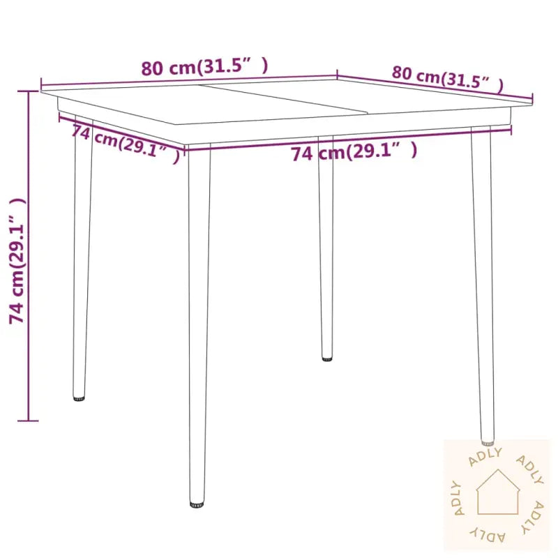 Denne utendørs spisestuen er designet for å vare. Den har en robust ramme i svart pulverlakkert stål som gir styrke og god stabilitet selv ved daglig utendørs bruk. Den elegante bordplaten i glass er slitesterk og enkel å holde ren – bare tørk over med en fuktig klut. Perfekt for måltider, drikkevarer eller dekorasjoner, så du får mest mulig ut av tiden ute.