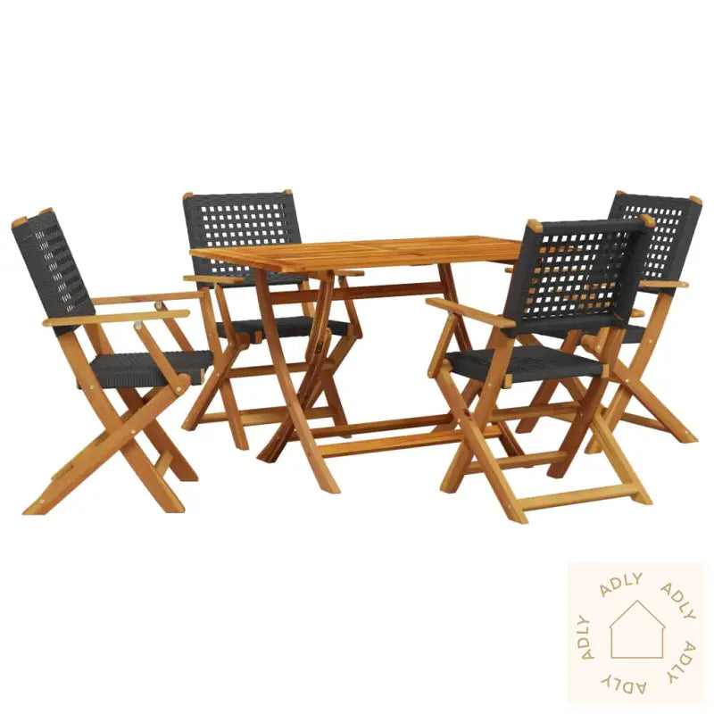 For å kunne glede deg over hagemøbler i heltre akasie år etter år, anbefaler vi å bruke et vanntett trekk når de ikke brukes.Bord:Materiale: oljebehandlet heltre akasieMål: 120 x 70 x 75 cm (L x B x H)Sammenleggbart for enkel lagringHagestol:Farge: svartMaterialer: heltre akasie med oljefinish, PE-rottingMål: 54 x 57 x 91 cm (B x D x H)Mål sete: 40 x 38 cm (B x D)Høyde sete fra bakken: 44 cmHøyde armlene fra bakken: 65 cmMaksimal lastekapasitet (per sete): 110 kgPute inkludert: neiMontering kreves: jaLeveransen inneholder:1 x hagebord4 x hagestoler