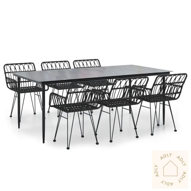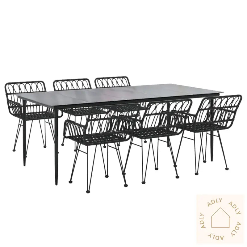 For å bevare hagemøblene best mulig over flere sesonger anbefales det å bruke et vanntett trekk når de ikke er i bruk.Alt du trenger for enkel montering følger med i pakken, inkludert tydelig monteringsveiledning.Bord:Farge: svartMaterialer: pulverlakkert stål, herdet glassMål: 200 x 100 x 74 cm (L x B x H)Stol:Farge: svartMaterialer: stål, polyetylen med rottingutseendeMål: 56 x 64 x 80 cm (B x D x H)Mål sete: 44 x 46 cm (B x D)Høyde sete: 47 cmHøyde armlene: 64 cmLeveransen inneholder:1 x bord6 x stoler