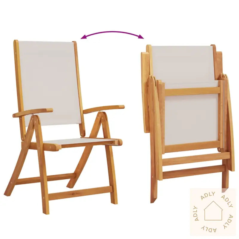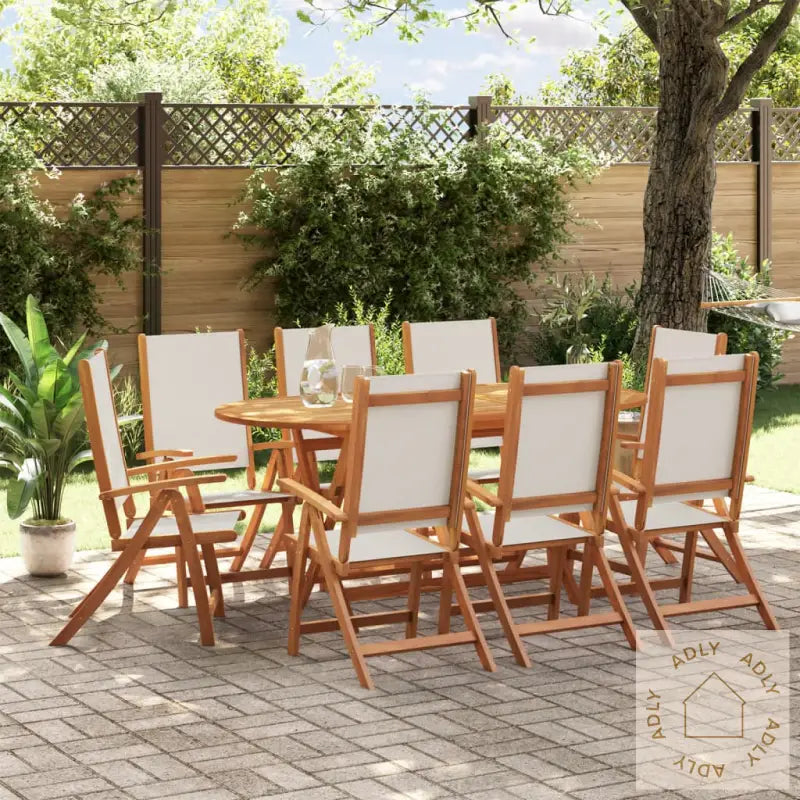 Heltre akasie: Hagespisegruppen er laget av heltre akasie, et naturlig og bærekraftig materiale som gir en varm og innbydende følelse til uterommet. Akasietre er kjent for å være robust, slitesterkt og motstandsdyktig mot vær og vind, noe som gjør det ideelt til utemøbler og møbler til hjemmet.Justerbar og sammenleggbar funksjon: Hagestolene kan enkelt justeres i fem forskjellige posisjoner, slik at du alltid finner den perfekte sitte- eller hvilestillingen for avslapning rundt bordet. De er også sammenleggbare, så de tar minimalt med plass når de skal oppbevares.Praktisk design: Bordet har et integrert parasollhull, slik at du kan montere en parasoll for komfortabel skygge på solrike dager. På den måten får du glede av uteplassen selv på varme sommerdager.Robust bordplate: Hagebordet har en solid og romslig bordplate som gir god plass til mat, drikke og dekorasjoner, og tåler både hverdag og fest.Overflate som er lett å rengjøre: Takket være oljebehandlingen blir overflaten både beskyttet og enkel å holde ren – det holder med en fuktig klut for å få bort smuss og flekker.Godt å vite: