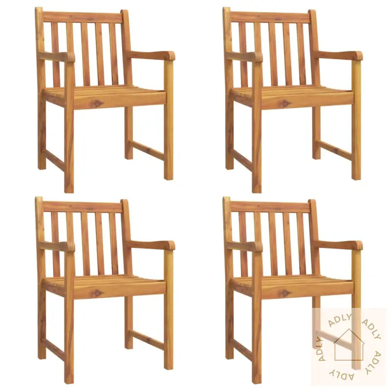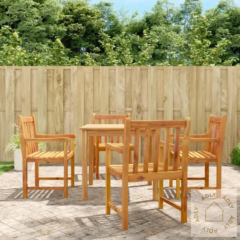 For å beholde møblenes fine utseende år etter år, anbefaler vi å bruke et vanntett trekk når de ikke er i bruk. Dette beskytter særlig heltre akasie og bevarer materialets naturlige glød.Bord:Materiale: Oljebehandlet heltre akasieMål: 85 x 85 x 74 cm (L x B x H)Stol:Materiale: Oljebehandlet heltre akasieMål: 56 x 55,5 x 90 cm (B x D x H)Bredde sete: 50 cmDybde sete: 42,5 cmHøyde sete fra bakken: 45 cmHøyde armlene fra bakken: 66 cmMontering kreves: jaLeveransen inneholder:1 x bord4 x stoler