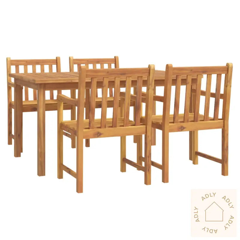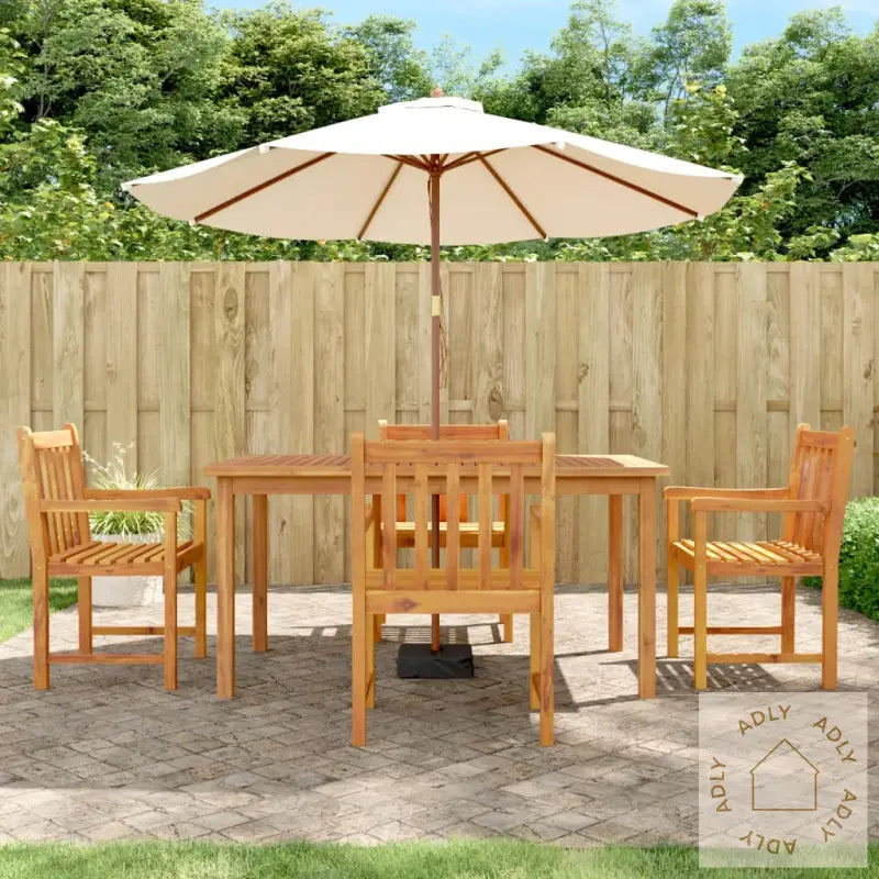 Heltre akasie: Dette settet er laget av oljebehandlet heltre akasie – et nydelig naturmateriale som ikke bare gir et eksklusivt uttrykk, men også imponerer med sin styrke og soliditet. Heltre akasie er kjent for sin tette struktur og holdbarhet, noe som gjør det perfekt til utemøbler og sikrer at du får glede av spisegruppen i mange år fremover.Praktisk bordplate: Bordplaten i robust heltre akasie gir god plass til alt fra matservering og fristende snacks til vakre pyntegjenstander. Her har du rikelig med flate både til festmåltider og koselige hverdagsmiddager.Komfortable seter: Spisestolene er designet med tanke på komfort – ryggstøtte og armlener sørger for en avslappende sittestilling. Nyt lange måltider og godt selskap uten å tenke på annet enn å slappe av.Godt å vite: