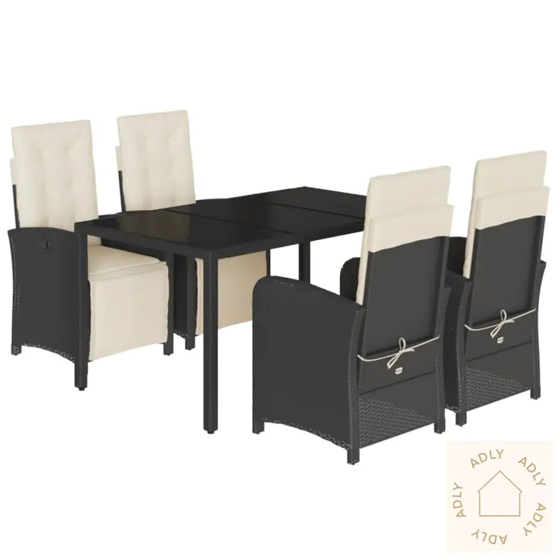 For å bevare utemøblene like fine gjennom hele sesongen, anbefaler vi å bruke et vanntett trekk når de ikke er i bruk.Stol:Farge: svartMaterialer: PE-rotting, pulverlakkert stålMål sittende: 57 x 60 x 93/110 cm (B x D x H)Mål liggende: 57 x 113 x 83 cm (B x D x H)Mål sete: 47 x 50 cm (B x D)Høyde sete fra bakken: 43,5 cmHøyde armlene fra bakken: 64,5 cmMaksimal lastekapasitet (per sete): 110 kgJusterbare føtter i plastUV-bestandigMontering kreves: jaBord:Farge glass: svartFarge bord: svartMaterialer: PE-rotting, pulverlakkert stål, herdet glassMål: 150 x 90 x 75 cm (L x B x H)Pute:Farge: kremhvitMateriale trekk: stoff (100% polyester)Materiale fyll: skumMål setepute: 84 x 48 x 4 cm (B x D x T)Mål ryggpute: 65 x 48 x 4 cm (L x B x T)Leveransen inneholder:4 x hagelenestoler1 x bord4 x ryggputer4 x seteputer med avtagbart og vaskbart trekk