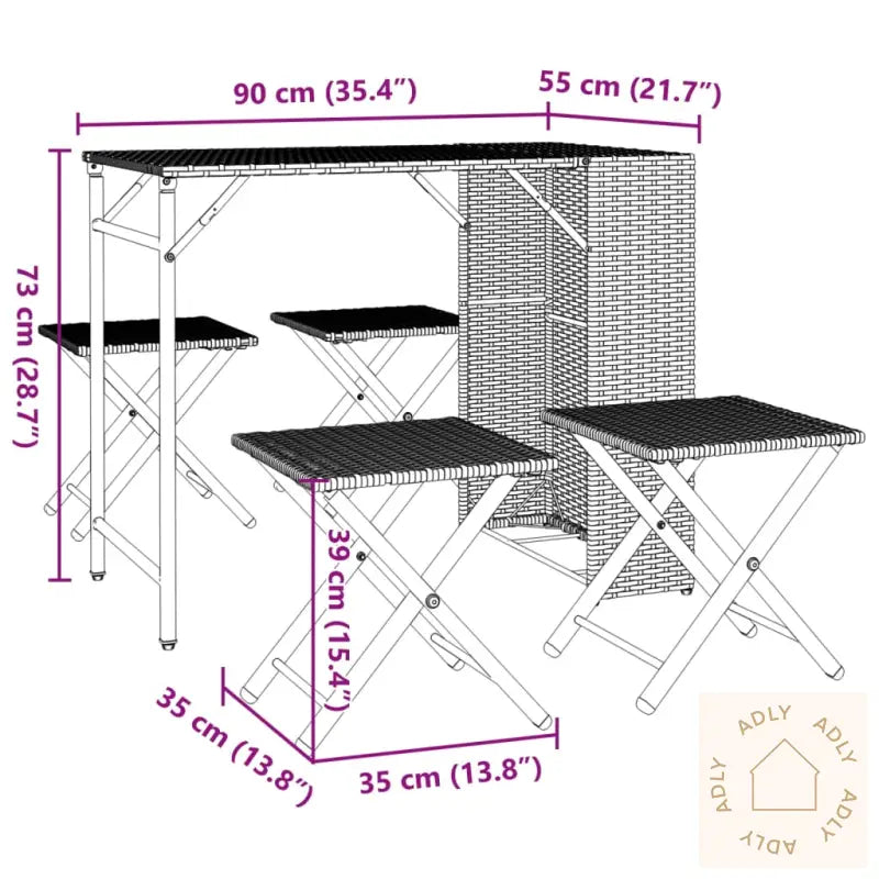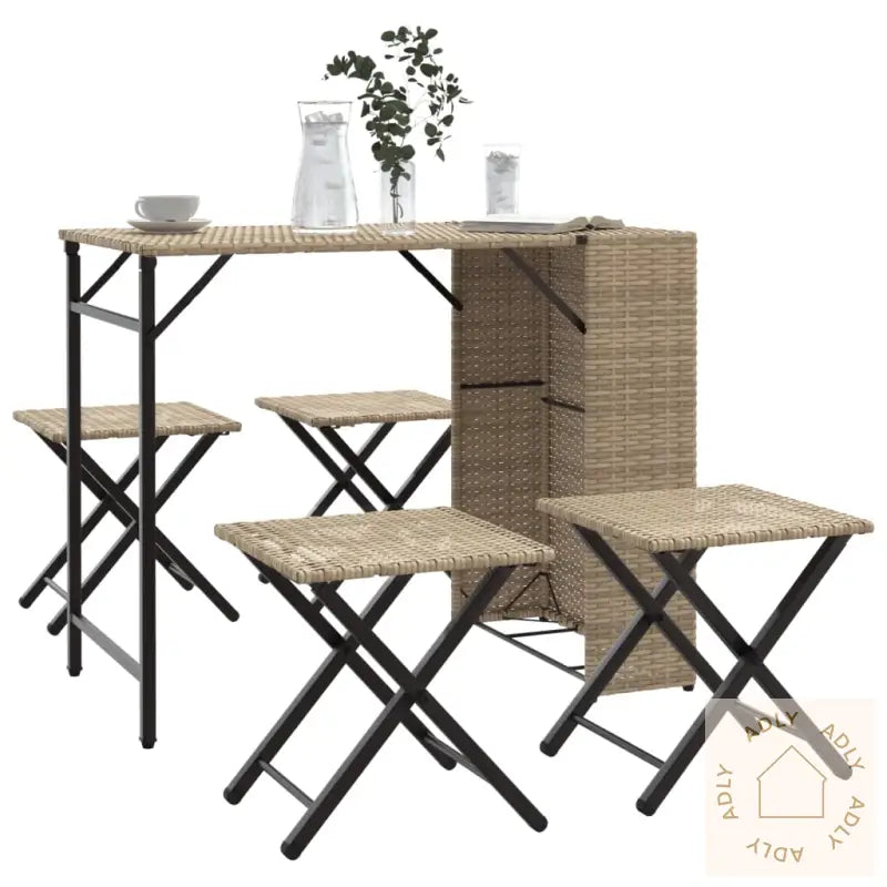 For å bevare utseendet på møblene best mulig anbefales et vanntett trekk når møblene ikke er i bruk.Farge: BeigeMaterialer: PE-rotting, pulverlakkert stålMål bord (utfoldet): 90 x 55 x 73 cm (L x B x H)Mål bord (foldet): 72,5 x 55 x 21 cm (L x B x H)Mål krakk (utfoldet): 35 x 35 x 39 cm (B x D x H)Mål krakk (foldet): 35 x 51 x 7 cm (B x D x H)Maksimal lastekapasitet (per sete): 110 kgSammenleggbarMontering kreves: jaLeveransen inneholder:1 x bord4 x krakkerMed denne hagespisegruppen får du fleksible, værbestandige og romslige hagemøbler som gir deg ekstra komfort og smarte mål – både på bord og krakk – uansett om du bruker dem hjemme eller tar dem med på tur.