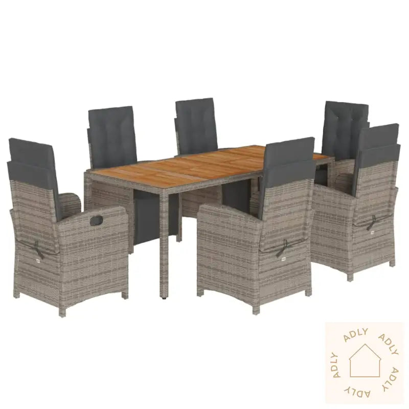- Komfortabel seteopplevelse: De tykke, polstrede putene sørger for en ekstra behagelig sitteopplevelse, perfekt for lange kvelder rundt bordet. Putene kommer i en lekker mørkegrå farge som matcher de grå materialene i møbelsettet.