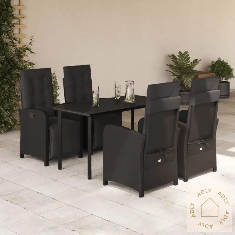 Slitesterkt materiale: Møblene er laget i PE-rotting (polyrotting), et ekstra sterkt og værbestandig syntetisk materiale som ligner naturlig rotting. Dette materialet er lett, enkelt å vaske og svært holdbart, noe som gjør det til en favoritt for utemiljøer. Sammen med svart pulverlakkert stål gir det en moderne look og lang levetid – ideelt for både hverdag og fest.