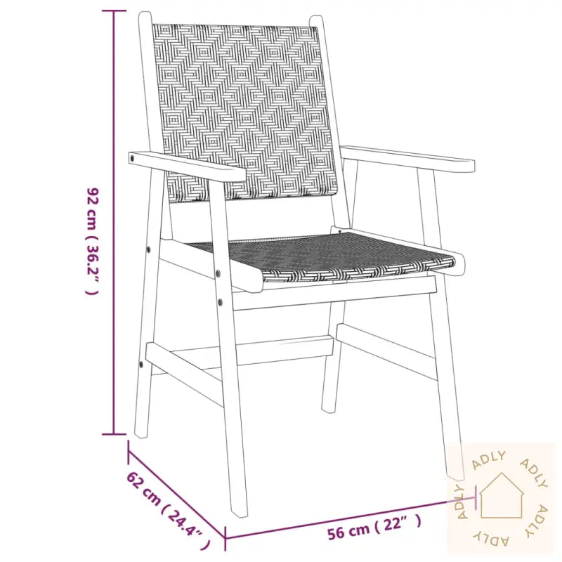 Attraktivt gittermønster: Stolene har et dekorativt gittermønster og stilrene materialer, noe som gir uteplassen et flott blikkfang og særpreg. Kombinasjonen av heltre akasie og flettet polyrotting gir både komfort og visuell interesse til dine møbler for uterommet.Disse hagemøblene har en robust konstruksjon og er designet for å tåle norsk klima, men vi anbefaler å bruke vanntett trekk for å forlenge levetiden til møblene dine og holde dem pene år etter år.