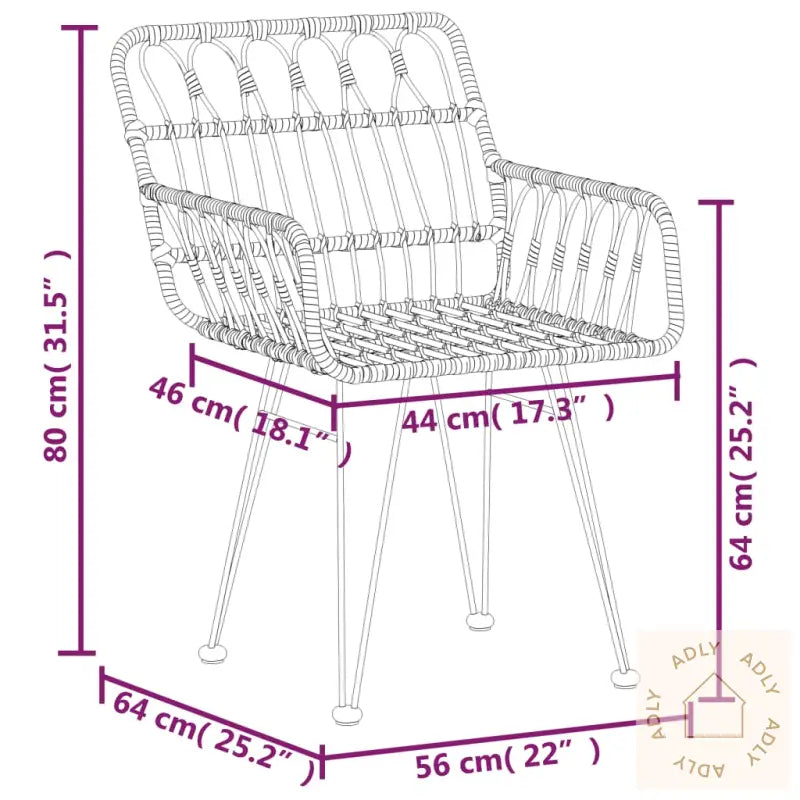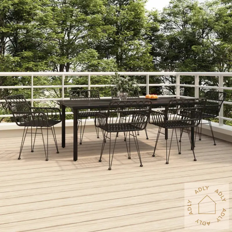 Slitesterkt materiale: PE-rotting, også kjent som polyrotting, gjør disse hagemøblene ekstra robuste mot vær og vind – perfekt for norske forhold! Materialet er dessuten enkelt å rengjøre, slik at settet ser pent og innbydende ut sesong etter sesong. PE-rotting gir både lang levetid, stilrent utseende og trygg kvalitet.Solid og stabil ramme: Stålrammene gir spisestuen en solid oppbygging som tåler daglig bruk ute. Dette gjør settet til et pålitelig valg når du ser etter møbler til hjemmet eller uterommet ditt, med trygg støtte uansett anledning.Praktisk bordplate: Bordplaten i herdet glass gir ikke bare et elegant preg, men er også både praktisk og enkel å vedlikeholde. En fuktig klut er alt som trengs for å holde den ren. Denne typen herdet glass er ekstra holdbar og tåler både små uhell og norske værforhold. Den solide og store bordflaten gir rikelig plass til måltider, drikker og alt av dekorasjoner du vil sette frem.Komfortable seter: Hver spisestol har både armlener og ryggstøtte for ekstra god komfort, slik at du kan sitte lenge – perfekt til alt fra frokost i morgensolen til lange kvelder med venner.Praktiske gummiføtter: Gummiføtter under bord og stoler bidrar til at hagesettet står stødig på flere typer underlag, og beskytter samtidig gulvet eller terrassen mot riper.Merk: