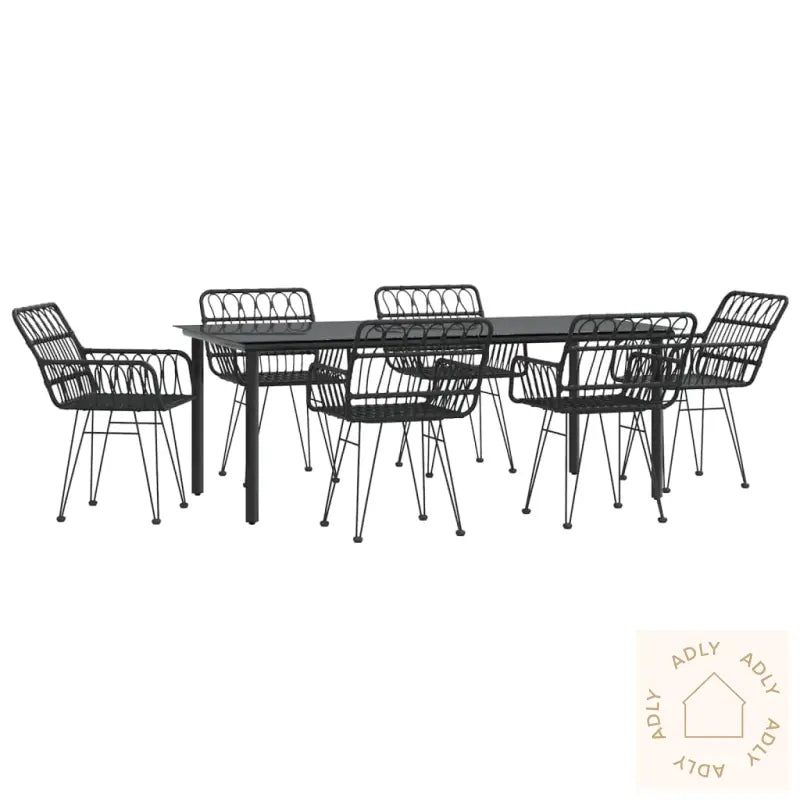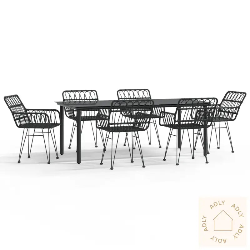 For å maksimere levetiden på dine utemøbler anbefales det å bruke et vanntett trekk når møblene ikke er i bruk eller i perioder med dårlig vær.Alle deler leveres med en enkel monteringsveiledning, så du kommer raskt i gang med dine nye svartfargede hagemøbler.Bord:Farge: svartMaterialer: pulverlakkert stål, herdet glassMål: 200 x 100 x 74 cm (L x B x H)Stol:Farge: svartMaterialer: stål, polyetylen med rottingutseendeMål: 56 x 64 x 80 cm (B x D x H)Mål sete: 44 x 46 cm (B x D)Høyde sete: 47 cmHøyde armlene: 64 cmLeveransen inneholder:1 x bord6 x stoler