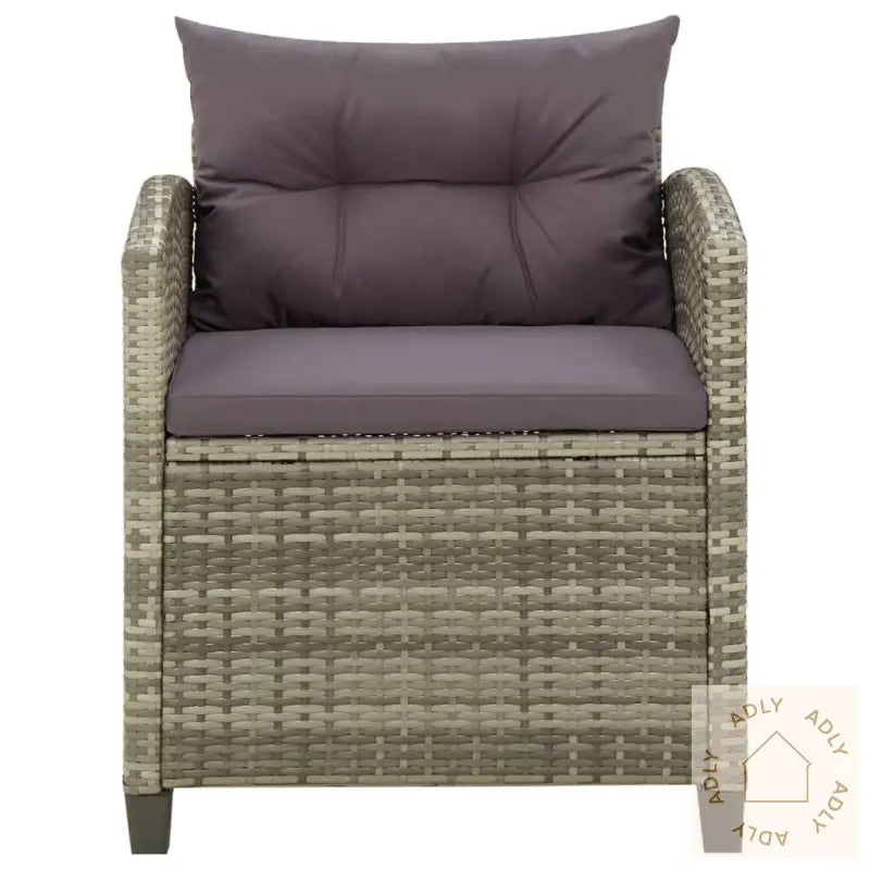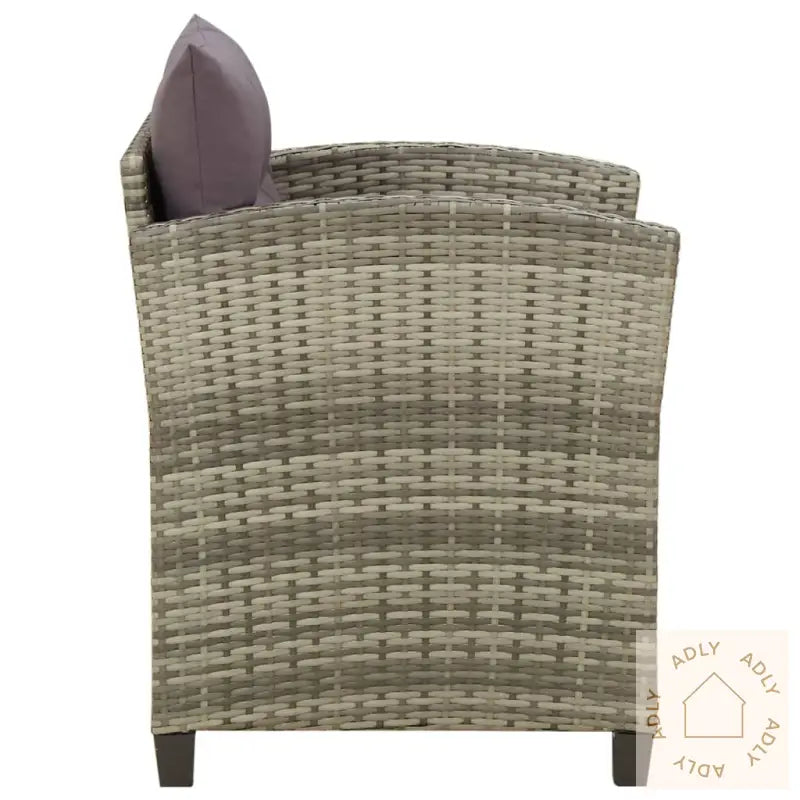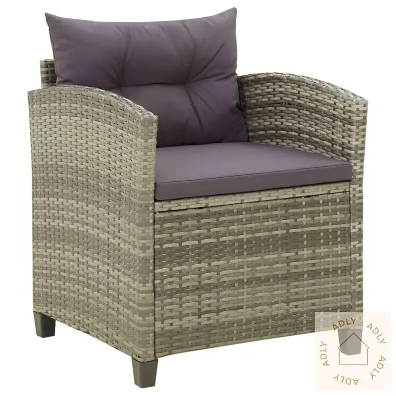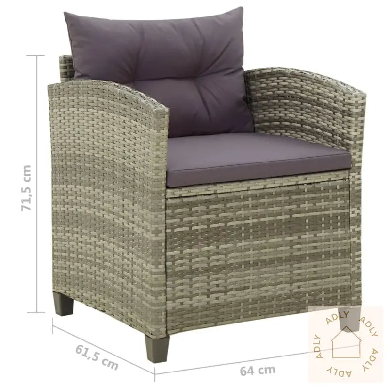 Farge: gråFarge pute: mørkegråMaterialer: PE-rotting, pulverlakkert stålMateriale pute: stoff (100% polyester)Mål sofa: 64 x 61,5 x 71,5 cm (B x D x H)Mål sete: 55 x 55 cm (B x D)Høyde sete fra bakken: 43 cmHøyde armlene fra bakken: 67 cmTykkelse setepute: 5 cmMontering kreves: jaLeveransen inneholder:2 x hagestol1 x seteputer1 x ryggpute