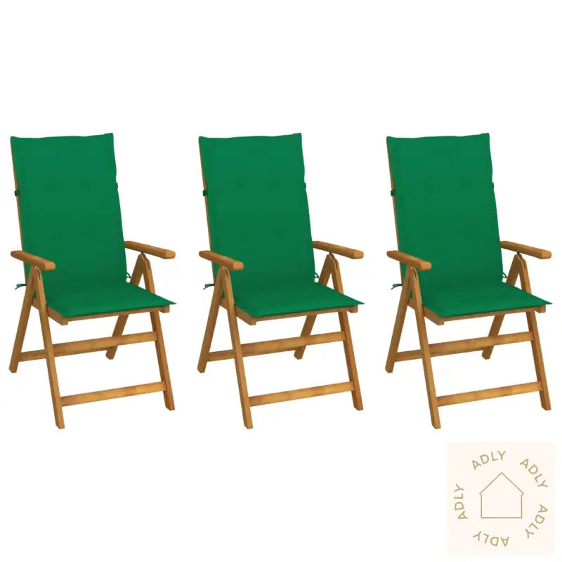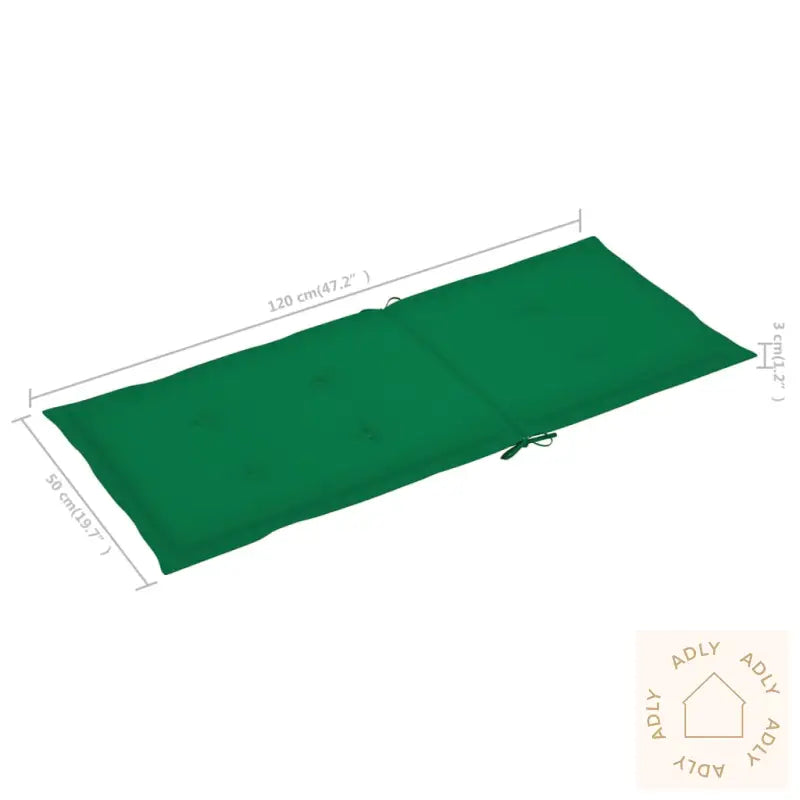 Farge pute: grønnMaterialer benk: heltre akasie med oljefinishMateriale pute: stoff (100% polyester)Mål stol: 57 x 69 x 111 cm (B x D x H)Mål pute: 120 x 50 x 3 cm (B x D x H)5 tilbakelente stillinger for optimal komfortSammenleggbar for enkel oppbevaring og transportElastisk stropp bak ryggstøtten gir ekstra sikker festeTo sett tau på begge sider sørger for at puten sitter stødigMontering kreves: jaLeveransen inneholder:3 x hagestoler med pute 1 x ekstra pute