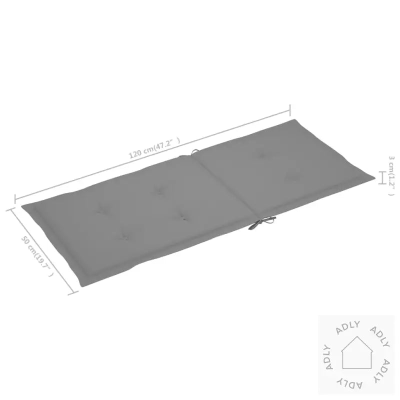 Farge pute: gråMateriale stol: heltre akasie med oljefinishMateriale pute: stoff (100% polyester)Mål stol: 57 x 69 x 111 cm (B x D x H)Mål pute: 120 x 50 x 3 cm (B x D x H)5 tilbakelente stillingerSammenleggbar for enkel oppbevaring og transportMed elastisk stropp bak ryggstøttenMed 2 sett med tau på begge siderMontering kreves: jaLeveransen inneholder:3 x hagestoler med pute1 x ekstra pute