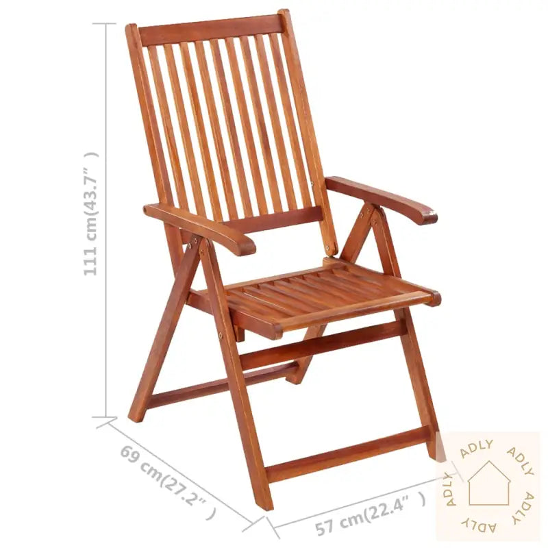 Den praktiske, sammenleggbare stolen er produsert i heltre akasie, et tropisk løvtre kjent for sin slitestyrke, naturlige vakre farge og lange levetid. Overflaten er oljebehandlet, noe som gir ekstra beskyttelse mot vær og vind, samtidig som den er lett å holde ren – bare tørk over med en fuktig klut ved behov. Spisestolen kan enkelt justeres i fem forskjellige posisjoner, så du finner alltid en sittestilling som passer for deg, enten du skal spise, lese eller bare lene deg tilbake og slappe av. Når stolen ikke er i bruk, kan du raskt brette den sammen for å spare plass, noe som gjør oppbevaring og transport både smart og enkelt.