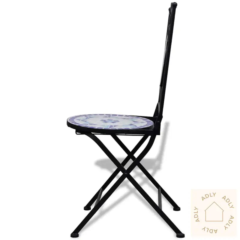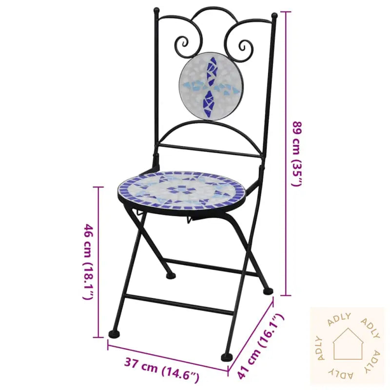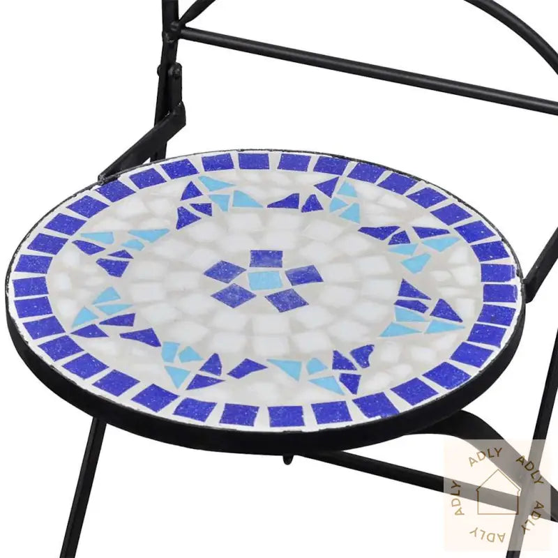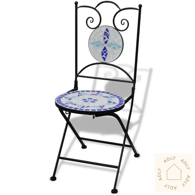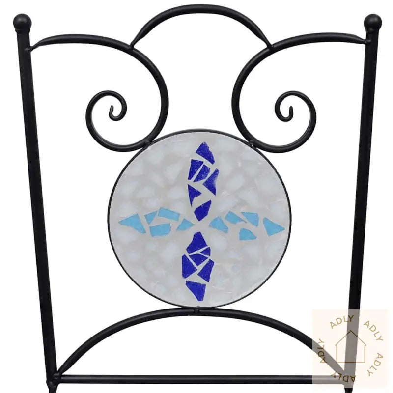 Stolene er bygd på en robust pulverlakkert jernramme som sørger for soliditet og lang holdbarhet, perfekt som elegante og funksjonelle hagemøbler. Det keramiske setet har ikke bare et vakkert, håndlaget mosaikkmønster i blått og hvitt, men tåler også vann, noe som gjør stolene lette å tørke av og vedlikeholde. Du får altså både kvalitet og enkel renhold i ett og samme produkt.