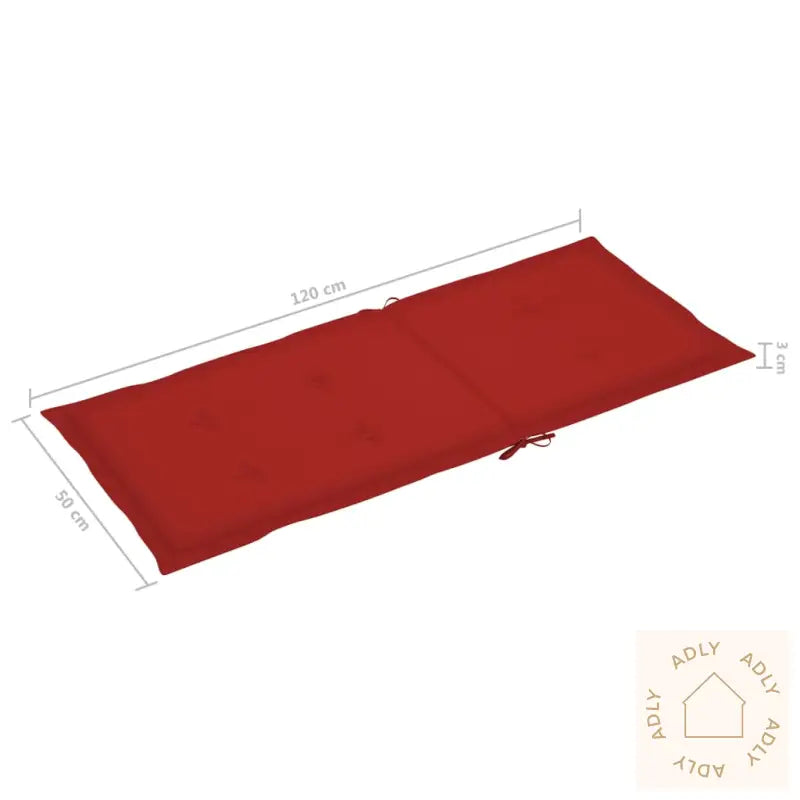 Farge pute: rødMaterialer benk: heltre akasie med oljefinishMateriale pute: stoff (100% polyester)Mål stol: 57 x 69 x 111 cm (B x D x H)Mål pute: 120 x 50 x 3 cm (B x D x H)5 tilbakelente stillingerSammenleggbar for enkel oppbevaring og transportMed elastisk stropp bak ryggstøttenMed 2 sett med tau på begge siderMontering kreves: jaLeveransen inneholder:2 x hagestoler med pute