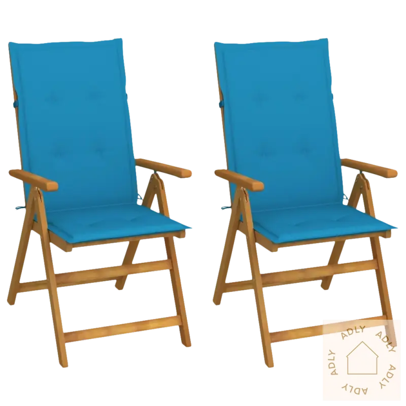 Farge pute: blåMaterialer benk: heltre akasie med oljefinishMateriale pute: stoff (100% polyester)Mål stol: 57 x 69 x 111 cm (B x D x H)Mål pute: 120 x 50 x 3 cm (B x D x H)5 tilbakelente stillingerSammenleggbar for enkel oppbevaring og transportMed elastisk stropp bak ryggstøttenMed 2 sett med tau på begge siderMontering kreves: jaLeveransen inneholder:2 x hagestoler med pute
