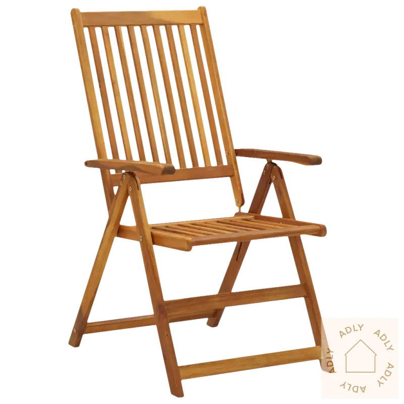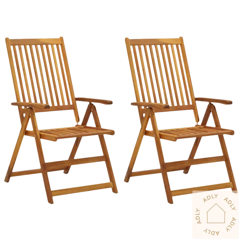 Stolene er laget i heltre akasie med en vakker oljefinish, så de ser eksklusive ut og tåler vær og vind. Akasietre er kjent for sine tette og robuste fibre, noe som gir stolene styrke og lang levetid – et smart valg for hagemøbler du vil ha glede av sesong etter sesong. Overflaten er enkel å vedlikeholde, bare tørk av med en fuktig klut når det trengs.