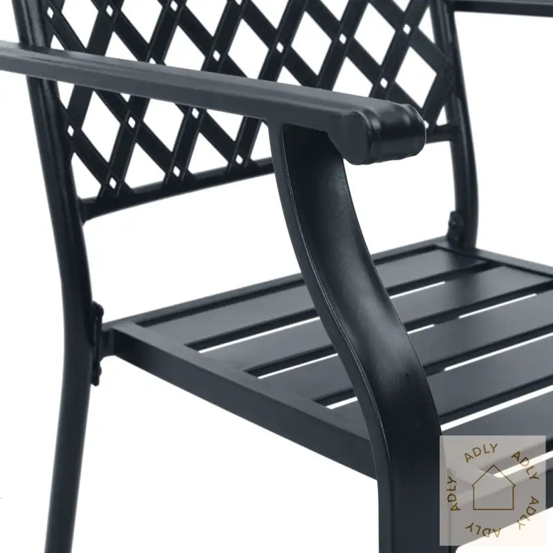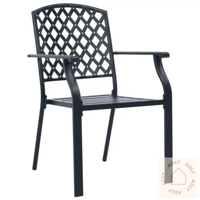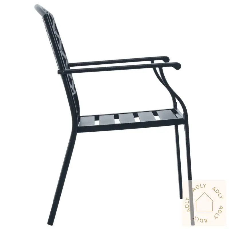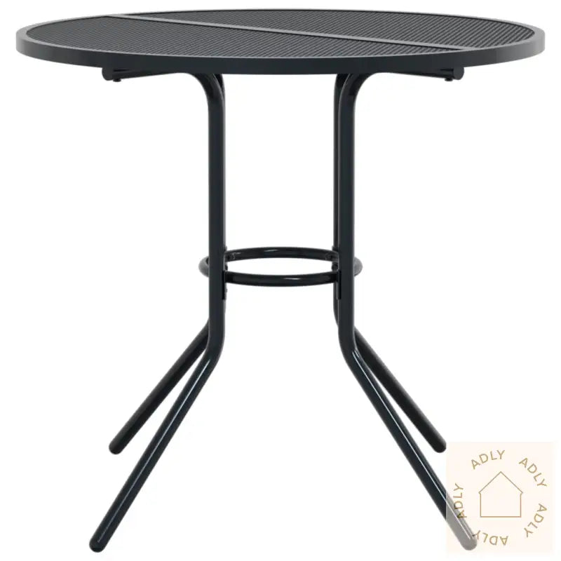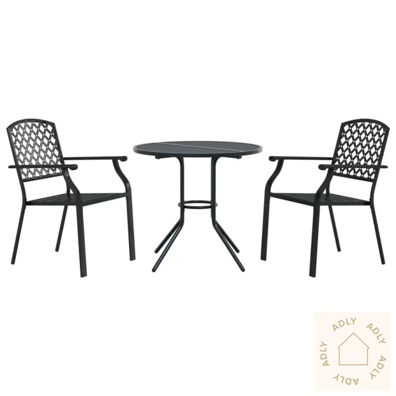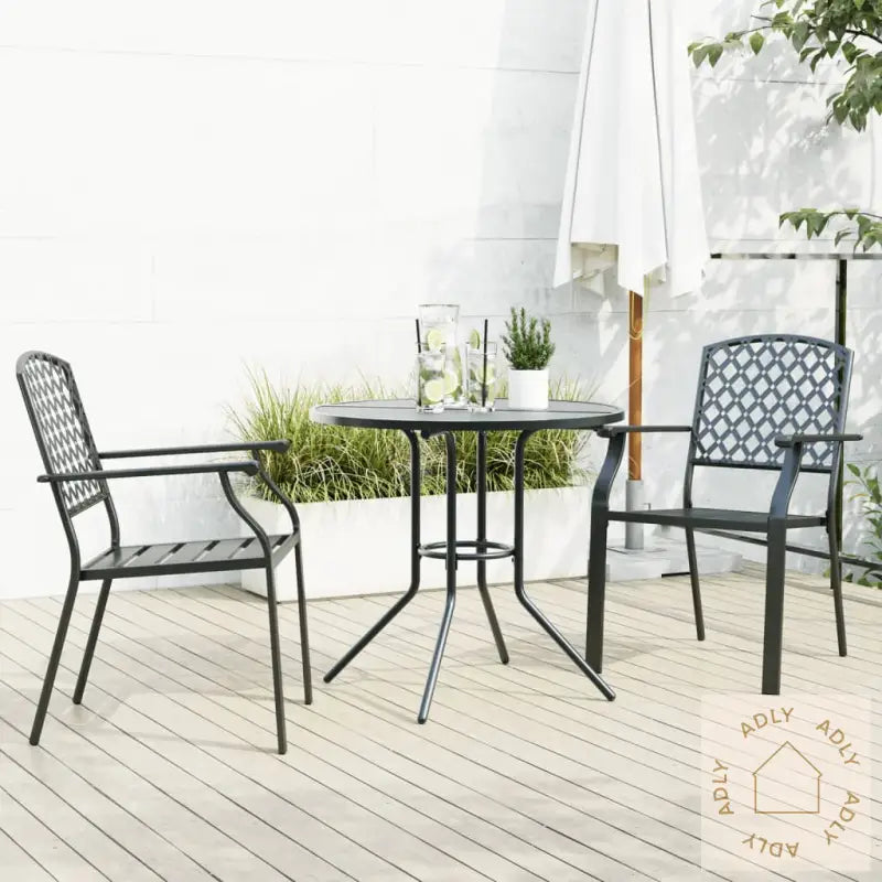 Settet er laget i slitesterkt pulverlakkert stål med elektroforesebehandling, som gir ekstra motstand mot rust, korrosjon og daglig slitasje. Antrasitt materiale ramme gir ikke bare styrke, men også et elegant uttrykk som passer til de fleste omgivelser og værforhold.Bistrostolene har komfortable ryggstøtter så du kan lene deg tilbake og nye lange kvelder utendørs.Takket være den stablebare funksjonen sparer du plass når settene ikke er i bruk – veldig praktisk både for små og store uterom.Bordplaten har vakkert nettingdesign og solide mønstre, og overflaten gjør det enkelt å plassere både mat, drikke og andre nødvendigheter trygt på bordet.Dette utestolsettet har en fleksibel utforming, slik at det sømløst kan brukes inne på kjøkkenet, spisestuen eller stuen, i tillegg til på veranda, balkong eller hage. Pulverlakkerte stålmaterialer gjør at settet holder seg like pent år etter år.Montering kreves: jaStol:Farge: antrasittMateriale ramme: pulverlakkert stål med elektroforesebehandlingMål: 56 x 65 x 89 cm (B x D x H)Bredde sete: 38,5 cmDybde sete: 46 cmHøyde sete fra bakken: 42,5 cmHøyde armlene fra bakken: 65,5 cmNettingdesignRust- og værbestandigMaksimal lastekapasitet (per sete): 110 kgPute inkludert: neiBord:Farge: antrasittMateriale ramme: pulverlakkert stål med elektroforesebehandlingMateriale skrue: rustfritt stålMateriale jernvare: galvanisert stålMål: 80 x 72,5 cm (Diameter x H)Leveransen inneholder:2 x stablebare hagestoler1 x bord