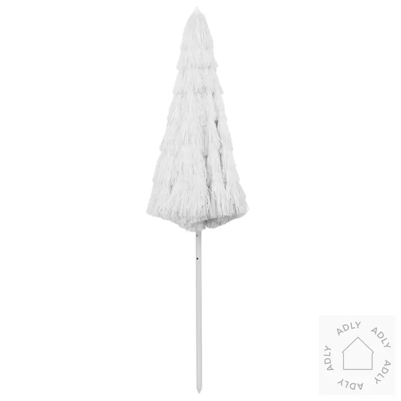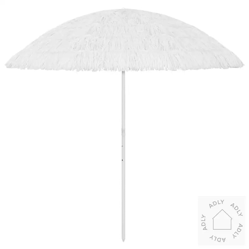 Farge: hvitMateriale: polyesterTotal høyde: 245 cmLengde bue: 300 cmDiameter parasoll: 260 cmVær- og UV-bestandigVippbarHawaii-stilMontering kreves: ja