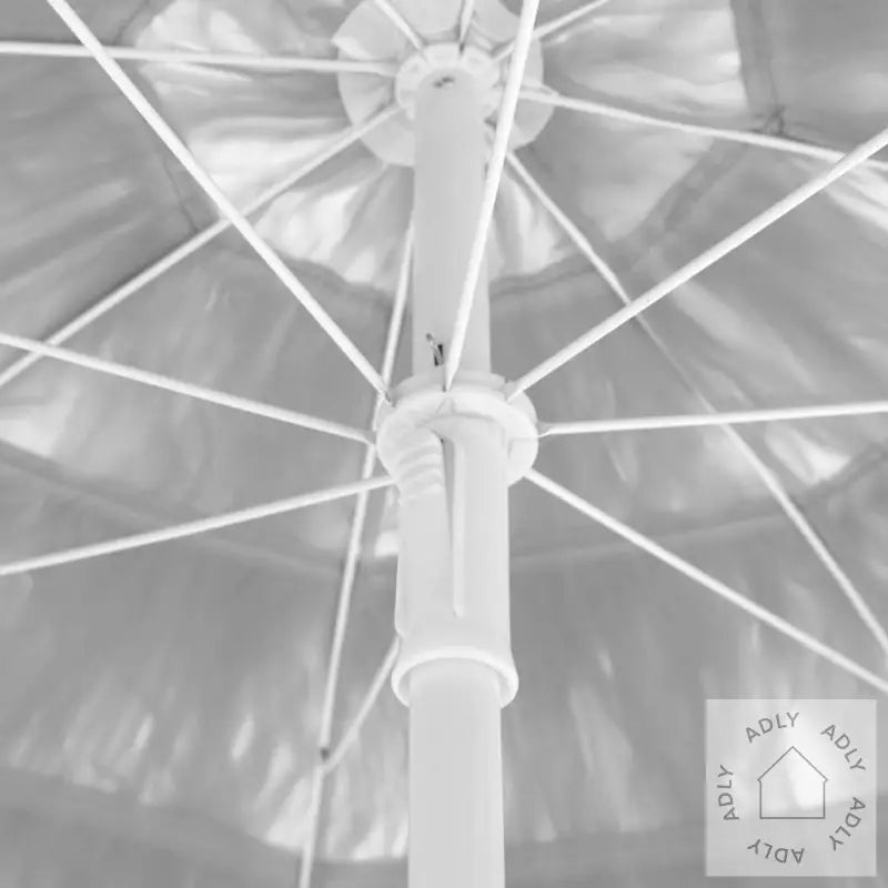 Parasollen står stødig, siden ribbene gir solid støtte til baldakinen. Den faste støttespikeren festes enkelt på stangen når parasollen strekkes ut, så du får en stabil parasoll hver gang. Med fleksibel tiltfunksjon kan parasollen justeres etter behov, noe som gir deg optimal beskyttelse mot solen fra alle vinkler. Passer både i eksisterende stativ eller mellom bordene hvis det finnes hull – praktisk uansett hvor du måtte ønske litt skygge blant dine hagemøbler. Parasollen tåler vær og vind, holder seg fin over tid og har god holdbarhet takket være det sterke polyestermaterialet.