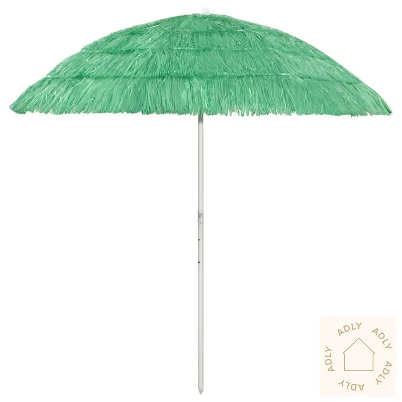 Farge: grønnMateriale: polyesterTotal høyde: 215 cmLengde parasoll: 240 cmDiameter parasoll: 210 cmVær- og UV-bestandigVippbarHawaii-stilMontering kreves: ja