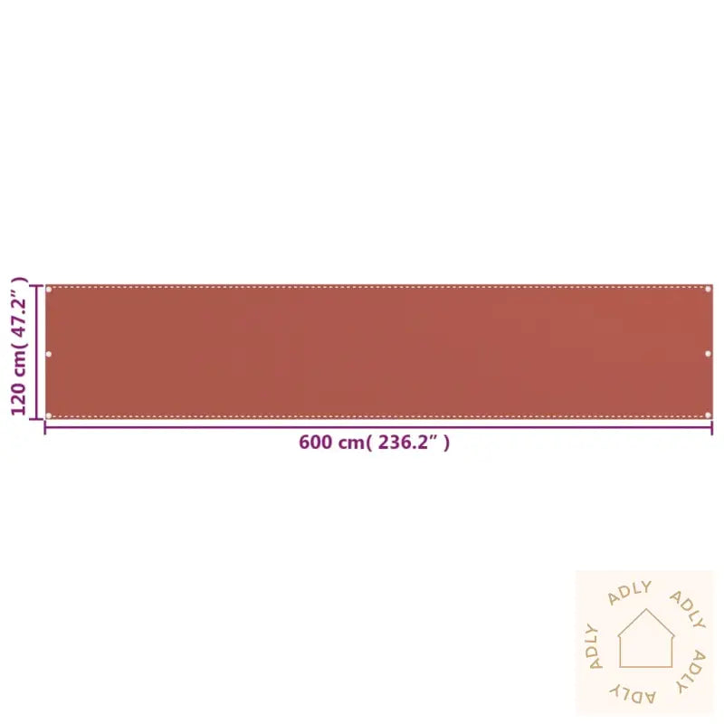 Farge: terrakottaMateriale: 100% HDPE (polyetylen med høy densitet)Mål: 120 x 600 cm (L x B)Tetthet stoff: 160 g/m²Vind- og vanngjennomtrengendeMugg- og UV-sikker, pustende HDPEAluminiumsmaljer24 m PE-tau inkludertMontering nødvendig: nei