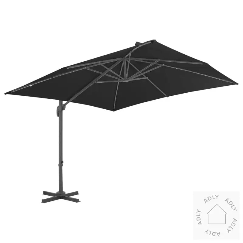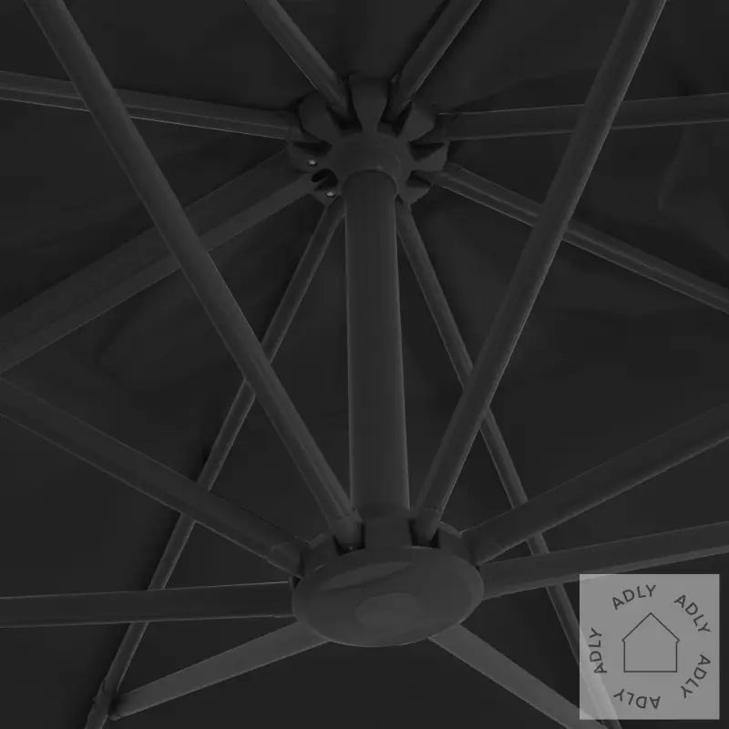 Farge skjerm: antrasittMaterialer: stoff med PA-belegg + pulverlakkert aluminiumSamlet mål: 300 x 300 x 258 cm (L x B x H)Mål kryssfot: 100 x 100 cm (L x B)Mål stang: 7 x 5 cm (L x B)Med lufteventil og sveivesystemVippbar og 360-graders roterende designInkluderer 8 aluminiumsspilerStoff: Polyester: 100%