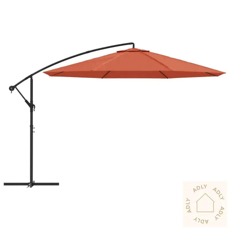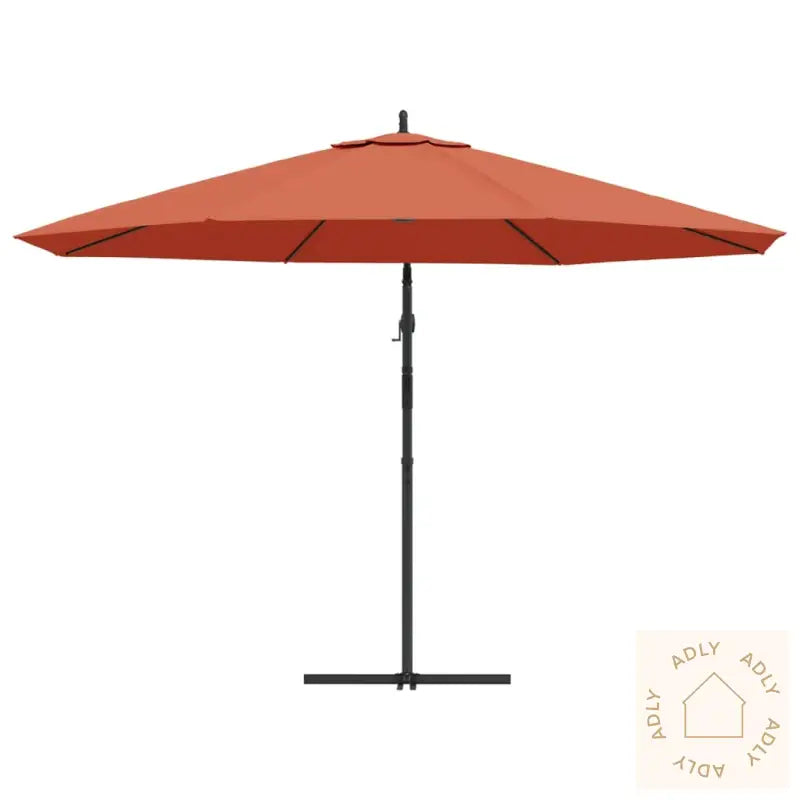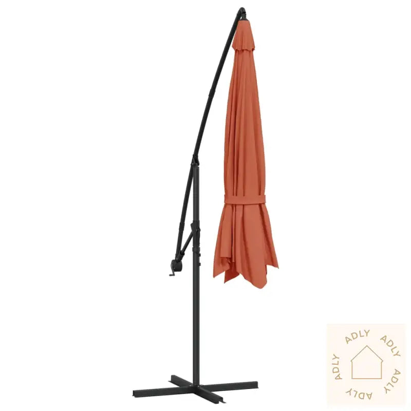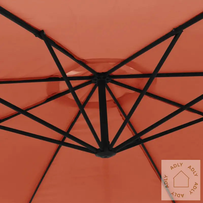 Farge skjerm: terrakottaMaterialer: stoff + metallstolpeSamlet mål: 350 x 268 cm (diameter x H)Mål kryssfot: 100 x 100 cm (L x B)Med luftventil og sveivemekanismeMed 8 stålspilerStoff: Polyester: 100%