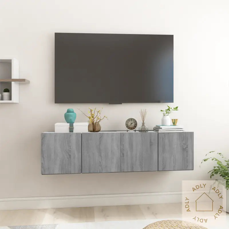 Premium materiale: De er laget av konstruert tre, kjent for sin eksepsjonelle kvalitet og glatte overflate. Materialet sørger også for at møbelet er slitesterkt, stabilt og motstandsdyktig mot fuktighet, perfekt for daglig bruk.Rikelig med lagringsplass: Hver moderne tv-benk har to rom. Dette gir god plass til å holde fjernkontroller, blader, DVDer eller andre hverdagslige småting organisert og lett tilgjengelig, noe som bidrar til å holde stuen fri for rot.Moderne stil: Det veggmonterte designet gir et luftig og ryddig inntrykk, og benkens enkle uttrykk passer naturlig sammen med ulike typer møbler i rommet. Den minimalistiske profilen gjør det lett å kombinere denne TV-benken med eksisterende interiør, enten du satser på klassisk eller samtidige møbler til hjemmet.Merk: