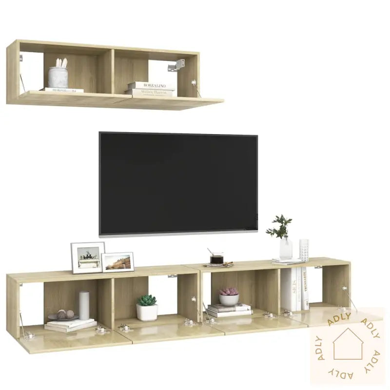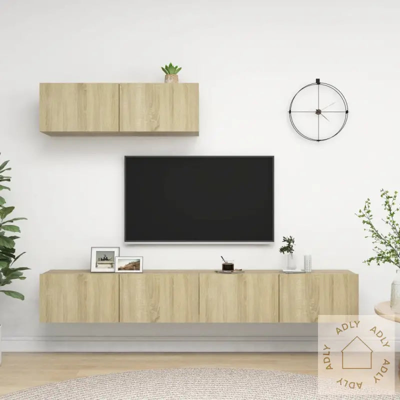 Denne hengende TV-benken kommer med rikelig oppbevaringsplass som hjelper deg å holde stuen ryddig og organisert. Den er perfekt for å lagre alt fra fjernkontroller, bøker, blader og medier – alt du trenger innen rekkevidde. TV-benken har et smart, veggmontert design som gir et moderne uttrykk og frigjør gulvplass, noe som gjør rommet luftigere. Den stilrene sonoma eik-finishen matcher lett med andre møbler til hjemmet og passer spesielt godt sammen med bokhyller og stående hyller i samme stil.