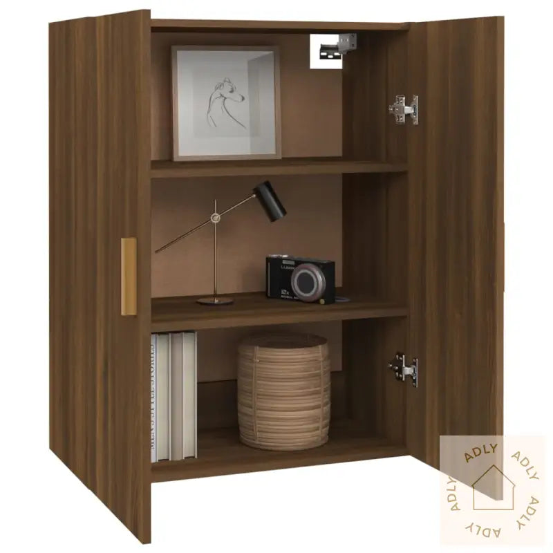 Dette klassiske hengende veggskapet i brun eik er designet for å utnytte veggplassen best mulig og samtidig gi et stilfullt løft til hjemmet ditt. Perfekt for deg som ønsker praktiske og moderne møbler til hjemmet, og som ønsker å holde orden på tingene sine.
