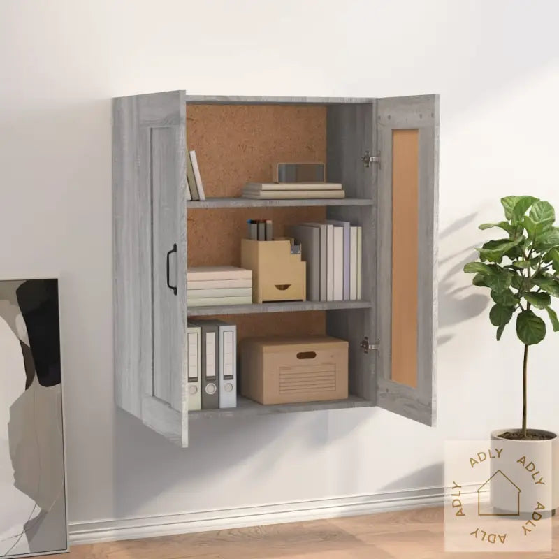 Skruer og plugger til montering i vegg følger ikke med. Husk å finne riktig type festemateriell til akkurat dine vegger, og spør gjerne profesjonelle dersom du er usikker. Følg alltid monteringsanvisningen nøye for best mulig resultat.Hver pakke inneholder en brukervennlig monteringsveiledning, slik at du enkelt kan sette opp skapet selv.Farge: grå sonomaMaterialer: konstruert tre, metallMål: 69,5 x 32,5 x 90 cm (B x D x H)Maksimal total lastekapasitet: 60 kg