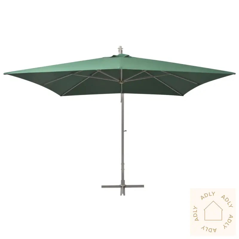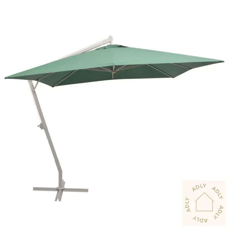 Farge: GrønnSkjermmateriale: Stoff (vanntett, UV-bestandig og farget)Rammemateriale: Aluminiumsstang og 8 ribberSkjermstørrelse: 300 x 300 cm (L x B)Total høyde: 290 cmMål kryssfot: 100 x 100 cm (L x B)Med luftventil og sveivemekanismeEnkel monteringStoff: Polyester: 100%