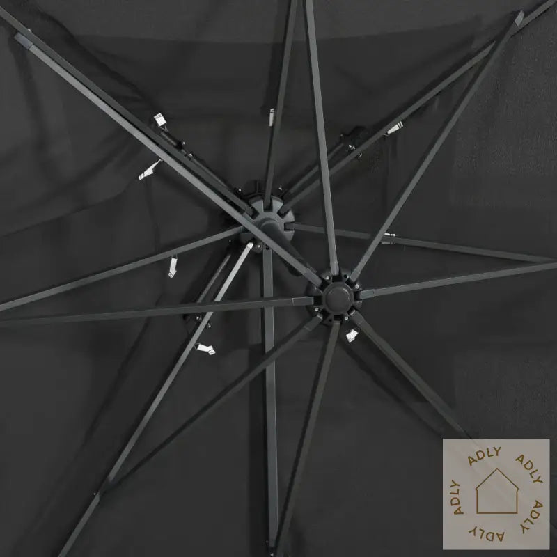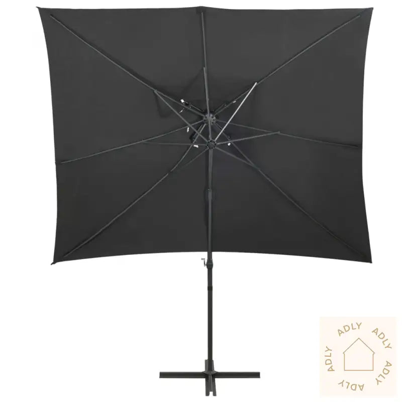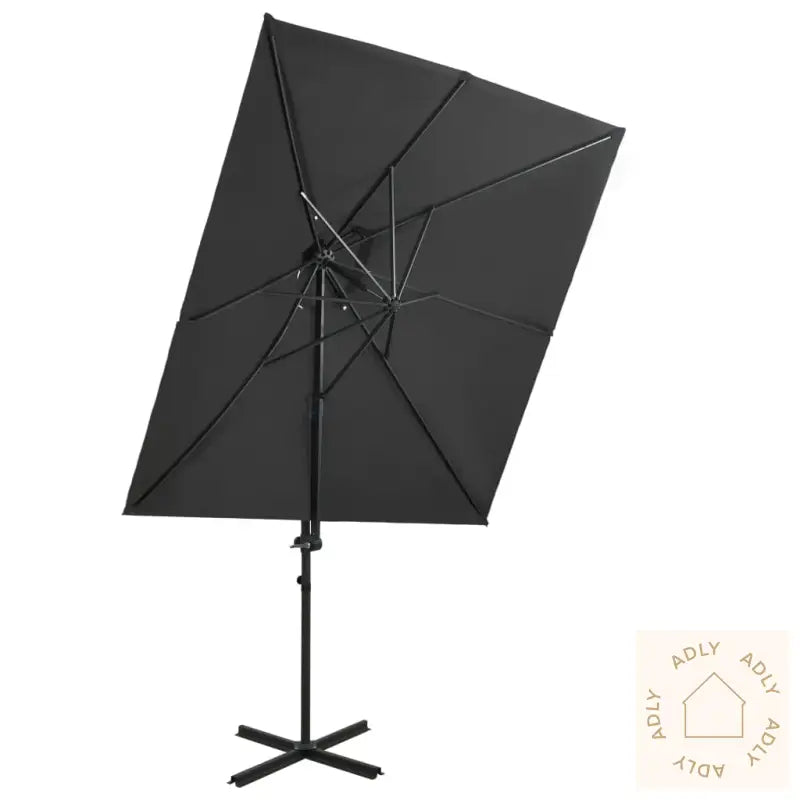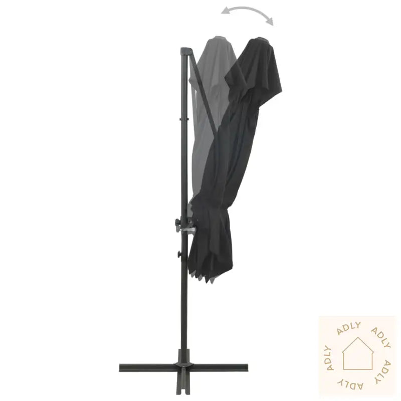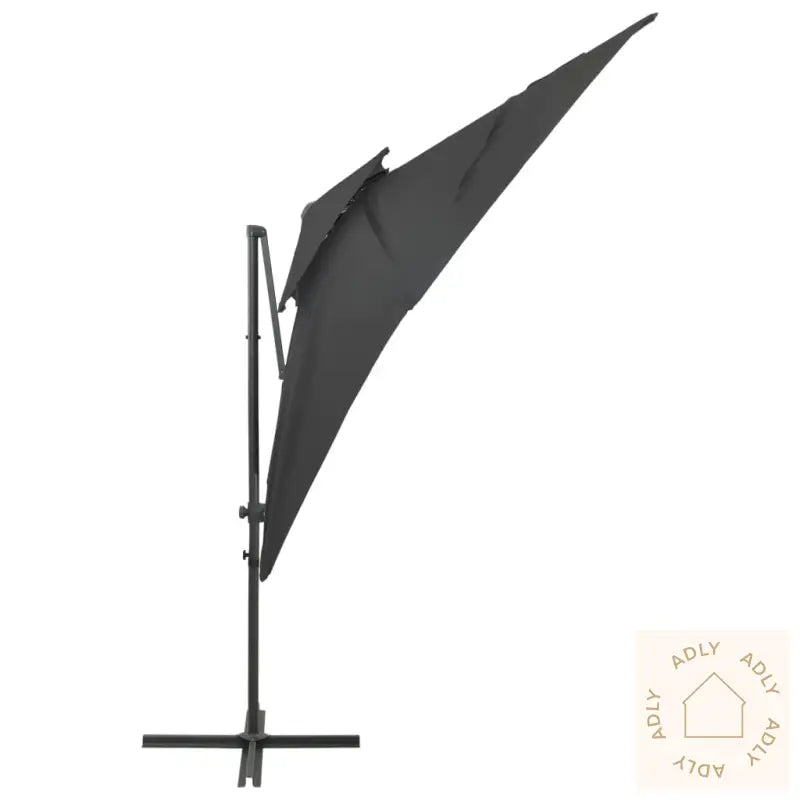 Denne elegante hengeparasollen med dobbel topp er et ideelt valg for deg som vil skape deilig skygge i hagen og samtidig beskytte deg mot solens sterke UV-stråler. Den passer perfekt sammen med moderne hagemøbler og tilfører uteområdet ditt en eksklusiv, stilfull touch.