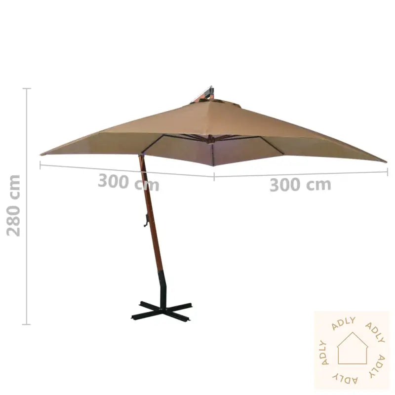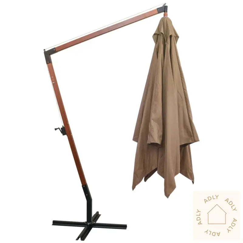 Denne iøynefallende hengeparasollen med stolpe i heltre gran gir både stil og funksjonalitet til uteplassen din. Perfekt som en del av hagemøbler, sørger parasollen for etterlengtet skygge og behagelig beskyttelse mot solens skadelige UV-stråler, slik at du får et komfortabelt sted å slappe av på terrassen, i hagen eller andre utendørsområder.