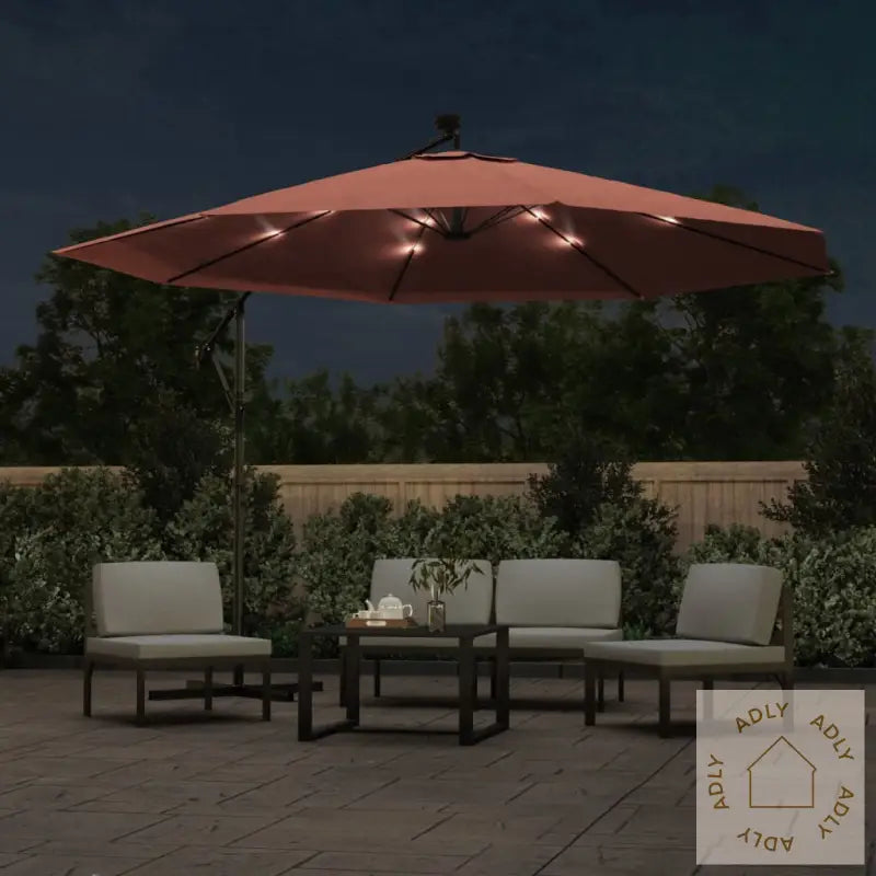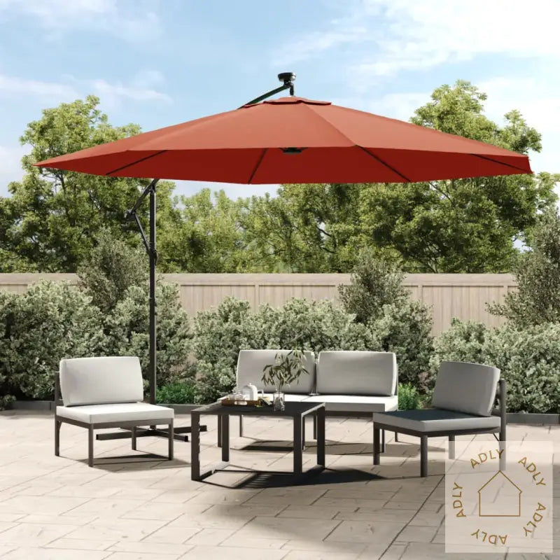 Denne stilige hengeparasollen med integrerte LED-lys er det ideelle tilskuddet til uterommet ditt, enten du har fokus på komfortable hagemøbler, eller ønsker å fornye uteplassen med funksjonelle møbler til hjemmet. Parasollen gir god og svalende skygge når du trenger det mest, samtidig som du får beskyttelse mot solens sterke UV-stråler.