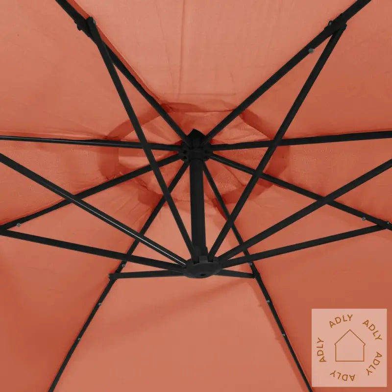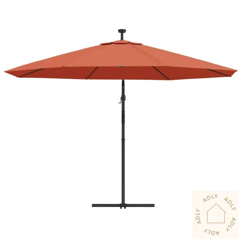 Farge skjerm: terrakottaMaterialer: stoff, metallSamlet mål: 350 x 290 cm (diameter x H)Mål kryssfot: 100 x 100 cm (L x B)Inkluderer 24 LED-lys og 1 solpanelEffekt solpanel: 0,7 WMed luftventil og sveivemekanismeMed 8 stålspiler