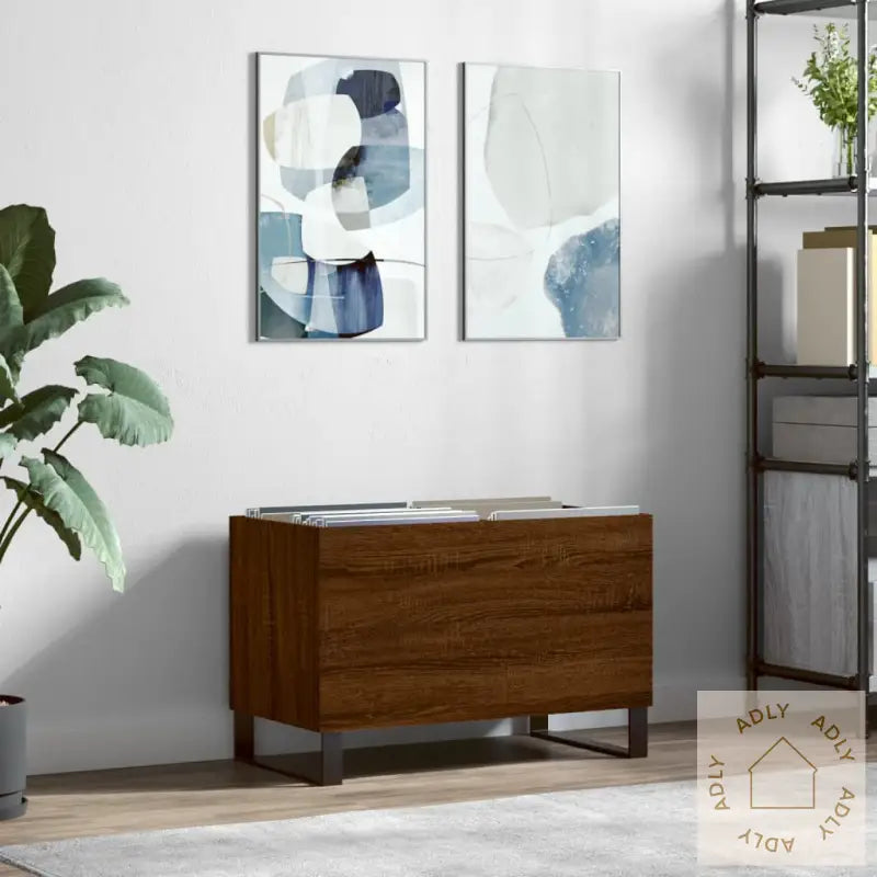 Oppbevar og vis vinylplatene dine på en smart og stilfull måte med denne praktiske og klassiske hifi-benken i brun eik. Den passer perfekt for deg som vil kombinere funksjon og design når du innreder med møbler til hjemmet.
