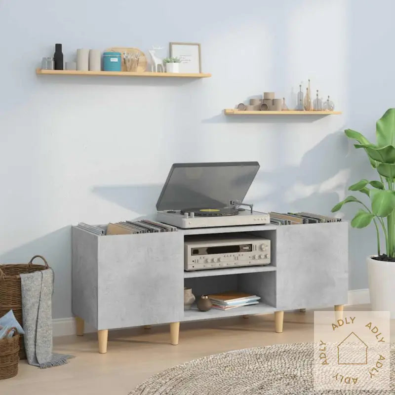 Slitesterkt materiale: Den er laget av konstruert treverk med en særdeles glatt overflate, noe som gjør hifi-benken både sterk, stabil og motstandsdyktig mot fukt. Dette gir deg et nydelig og varig møbel som tåler daglig bruk.Rikelig lagringsplass: Det romslige skapet har god plass til alle LP-platene dine, slik at du holder orden på musikksamlingen og får enkel tilgang når du vil spille favorittplatene.Solid topp: Den solide toppflaten er perfekt for platespilleren, men passer også fint til annen elektronikk eller dekorgjenstander, og skaper en ryddig og moderne look i rommet.Flere funksjoner: Denne smarte benken funker ikke bare som hifi-møbel! Du kan bruke den som TV-benk, et sideskap i stua, eller som arkivskap til kontoret – fleksibel design som passer alle behov for møbler til hjemmet.Treføtter: Treføttene i heltre eukalyptus gir et naturlig og varmt uttrykk, samtidig som de gir stabilitet og løfter hele benken visuelt. Dette gjør den ekstra fin også sammen med utendørsmøbler, om du ønsker samme stil inne og ute.Farge: BetonggråMaterialer: Konstruert tre og heltre eukalyptusMål: 121 x 38 x 48 cm (B x D x H)Montering kreves: Ja