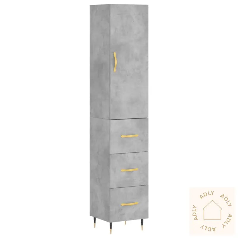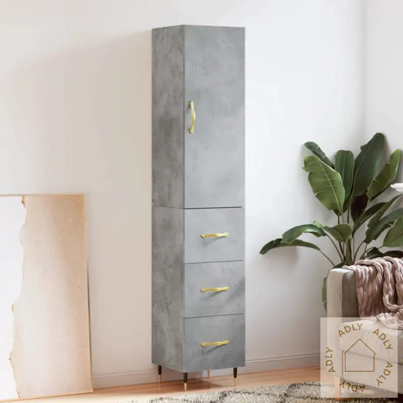 Skruer og plugger til veggmontering følger ikke med. Det er smart å velge skruer og plugger som passer til akkurat dine vegger. Er du usikker, spør gjerne en fagperson. Følg instruksjonene nøye under montering for sikker bruk.Farge: Betonggrå – en moderne nyanse som passer inn i flere ulike stiler av møbler til hjemmet.Materialer: Konstruert tre, metallStørrelse totalt: 34,5 x 34 x 90 cm (B x D x H)Montering kreves: Ja – monteringen er enkel og gir deg et robust resultat.Leveringen inkluderer:1 x skjenk1 x topp for highboardLegal Documents: